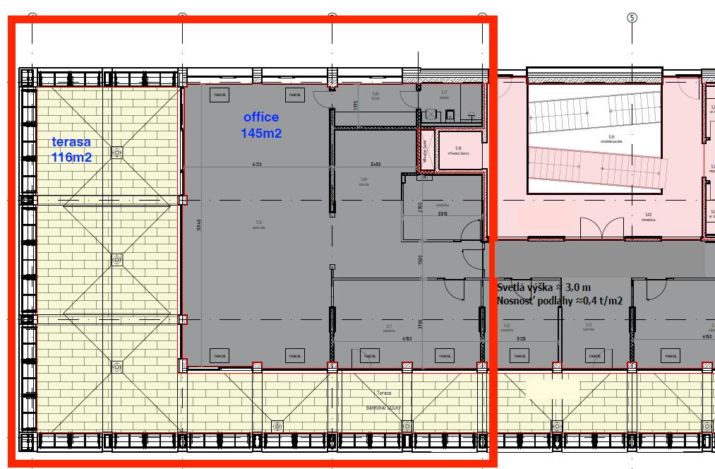 K dispozícií je exkluzívny 145m2 celok kancelárií na najvyššom 5.NP (aj výťah).