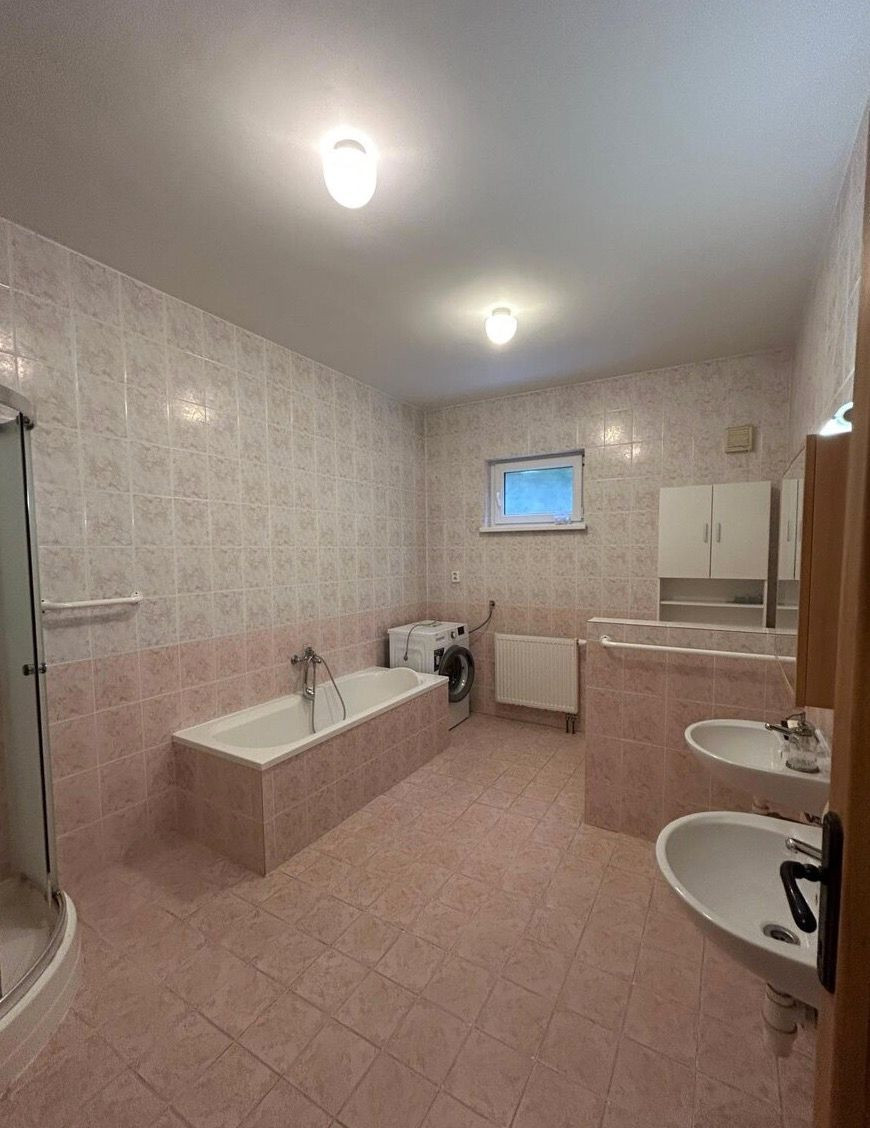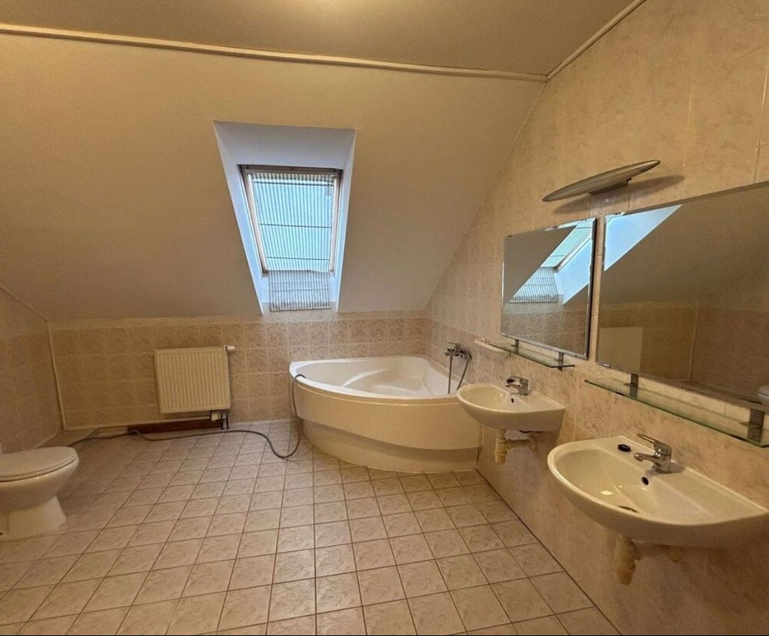 • Veľká kúpeľňa s rohovou vaňou, sprchovým kútom a dvomi umývadlami
