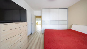 Byt je výborne dispozične riešený – denná časť je orientovaná na juh, čo zabezpečuje dostatok svetla počas celého dňa, a nočná časť na sever, vďaka čomu poskytuje príjemný chlad a pokojný spánok. Priestranná obývacia izba prepojená s kuchyňou a jedálenskou časťou
