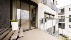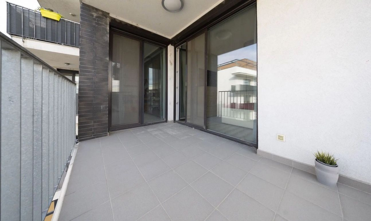 Dva balkóny (spolu 11 m²) s výhľadom do tichého okolia