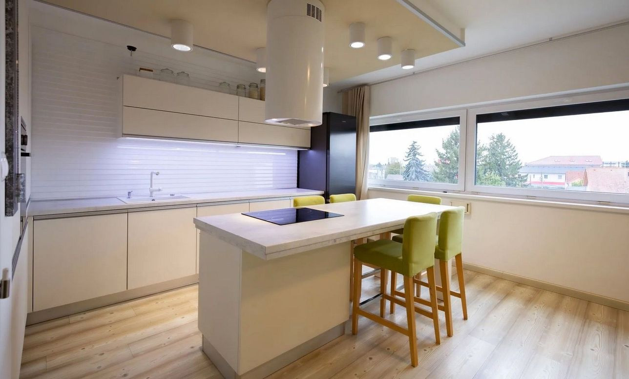 Všetky okná majú elektrické rolety na diaľkové ovládanie, balkónové dvere so sieťkami proti hmyzu. Kuchyňa je kompletne vybavená vstavanými spotrebičmi (varná doska, rúra, umývačka riadu, chladnička, mraznička, digestor).