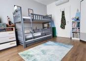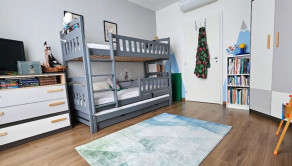 Obývacia izba s kuchyňou, detská izba, spálňa, kúpeľňa, samostatné wc, veľkou výhodou je prístup na terasu z každej z troch obytných izieb. Byt je svetlý a riešený vzdušne.