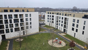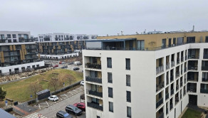 Byt je na najvyššom 5. poschodí s výhľadom na park, detské ihrisko, námestie (otočený do vnútrobloku).