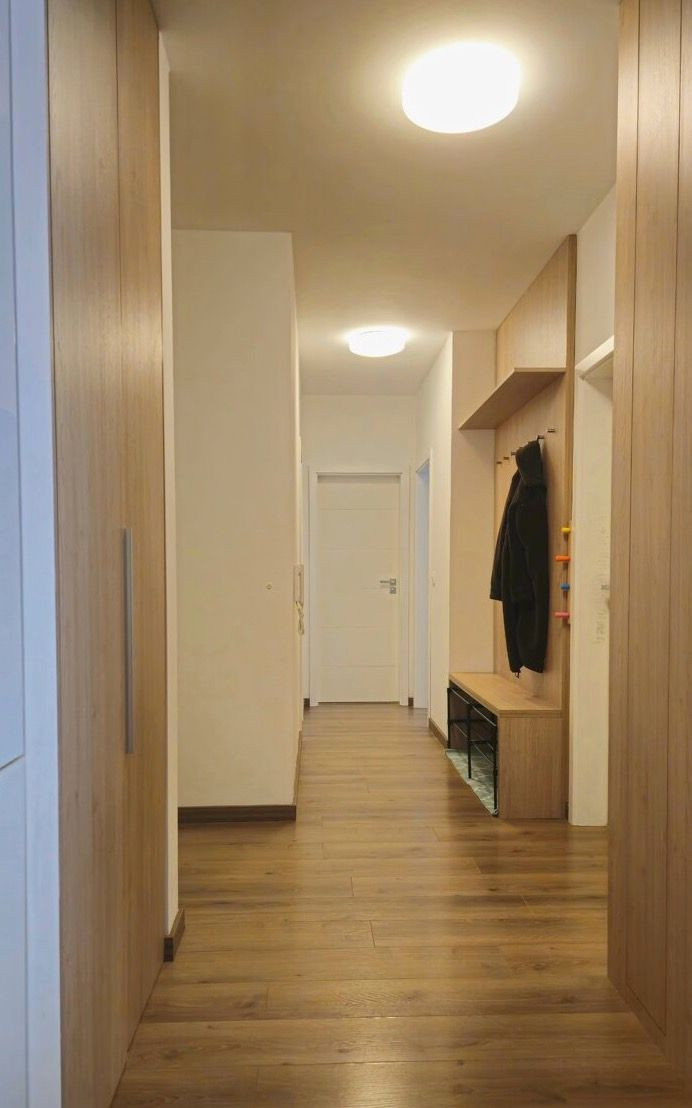 ​Úložné priestory: Vstavaná skriňa v spálni, priestranná šatníková skriňa a skrytý botník na chodbe a praktická zostava v priestore toalety.