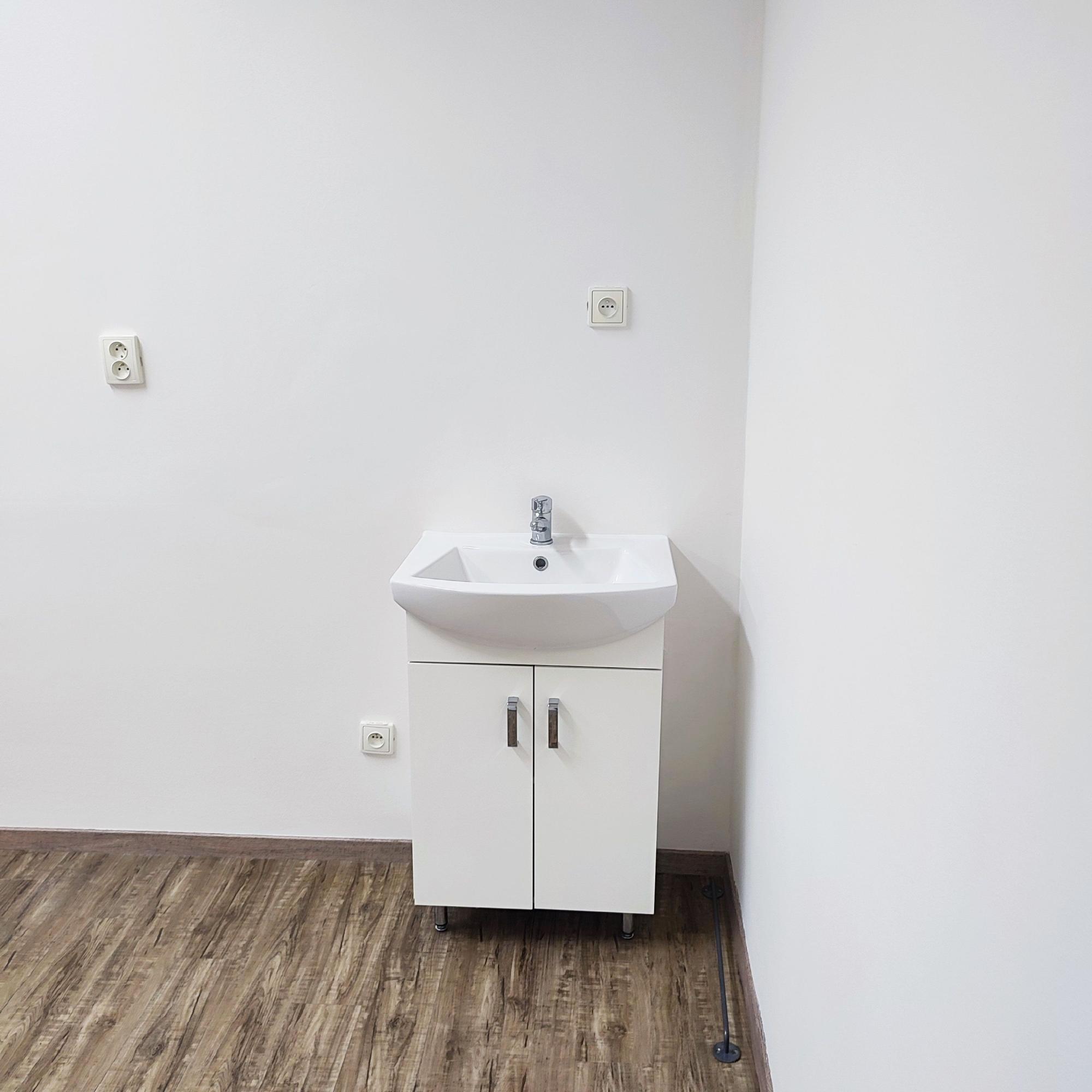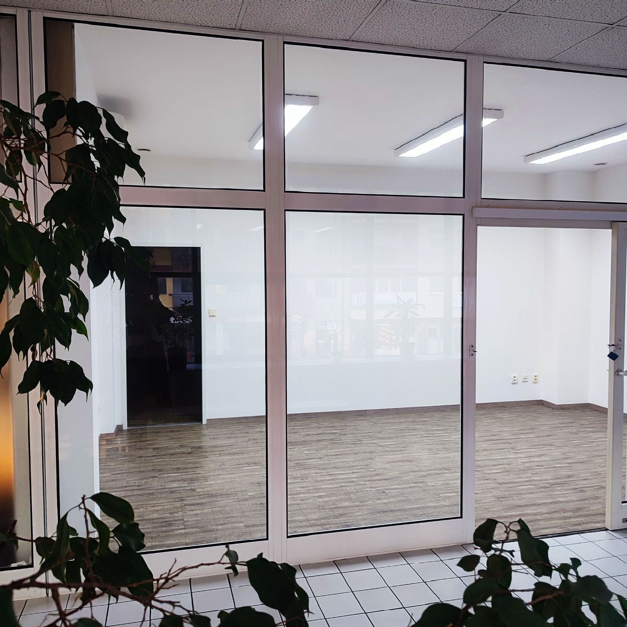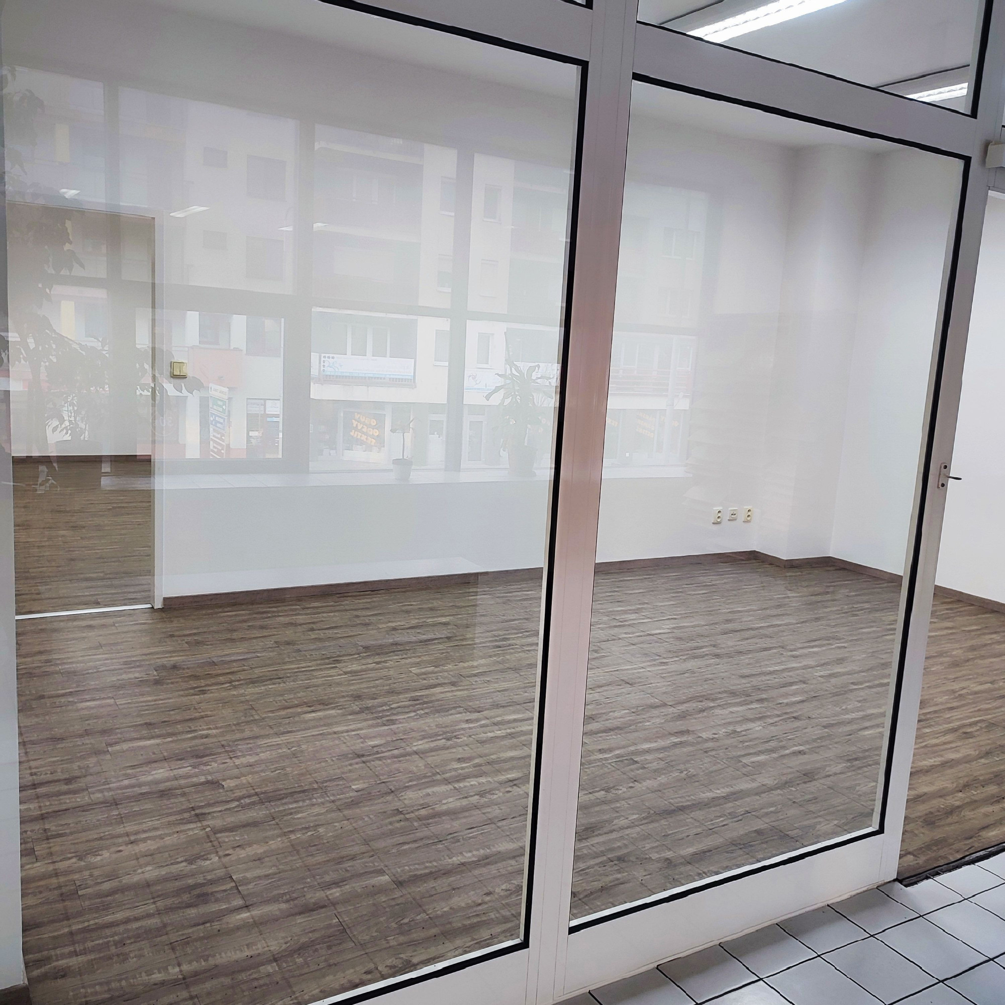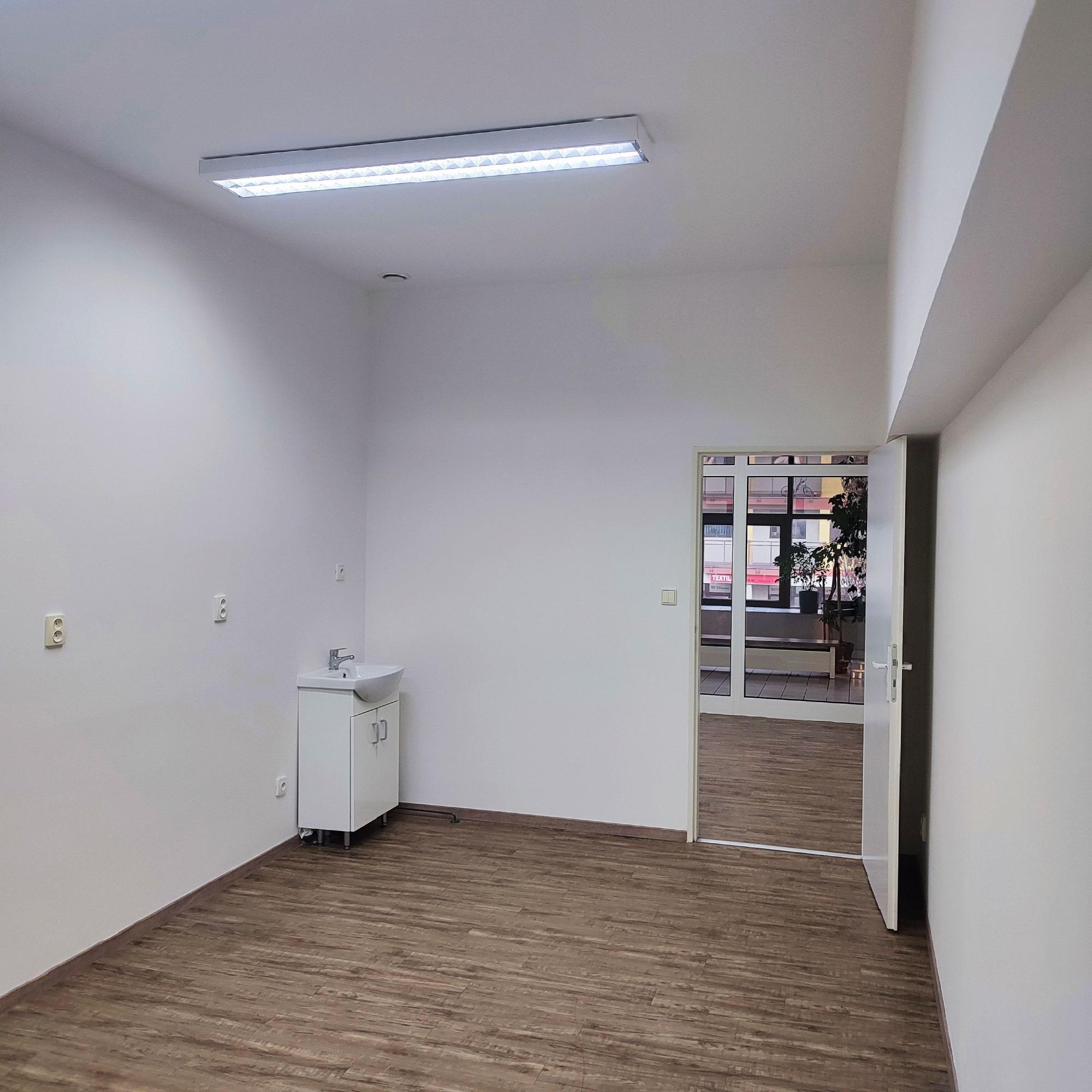 Obchodný priestor o výmere 36,60 m2 na 1. poschodí - cena 500 €/mesiac (vrátane záloh za služby a energie a DPH). Priestor je rozdelený na vstupný uvítací priestor a kanceláriu. Po ľavej strane je vchod do samostatných kancelárii s umývadlom. Podlahy v priestoroch sú vybavené vinylovou podlahou Kuchynka a samostatne WC sa nachádzajú (cca 3m) na chodbe.