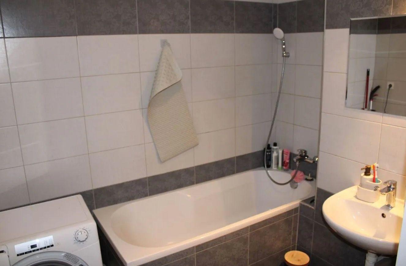 Byt je 2 izbový a prakticky riešený, má veľkú obývačku spojenú s kuchyňou, oddelenú spálňu, praktický šatník a priestrannú kúpelňu s vaňou a práčkou + oddelený záchod.