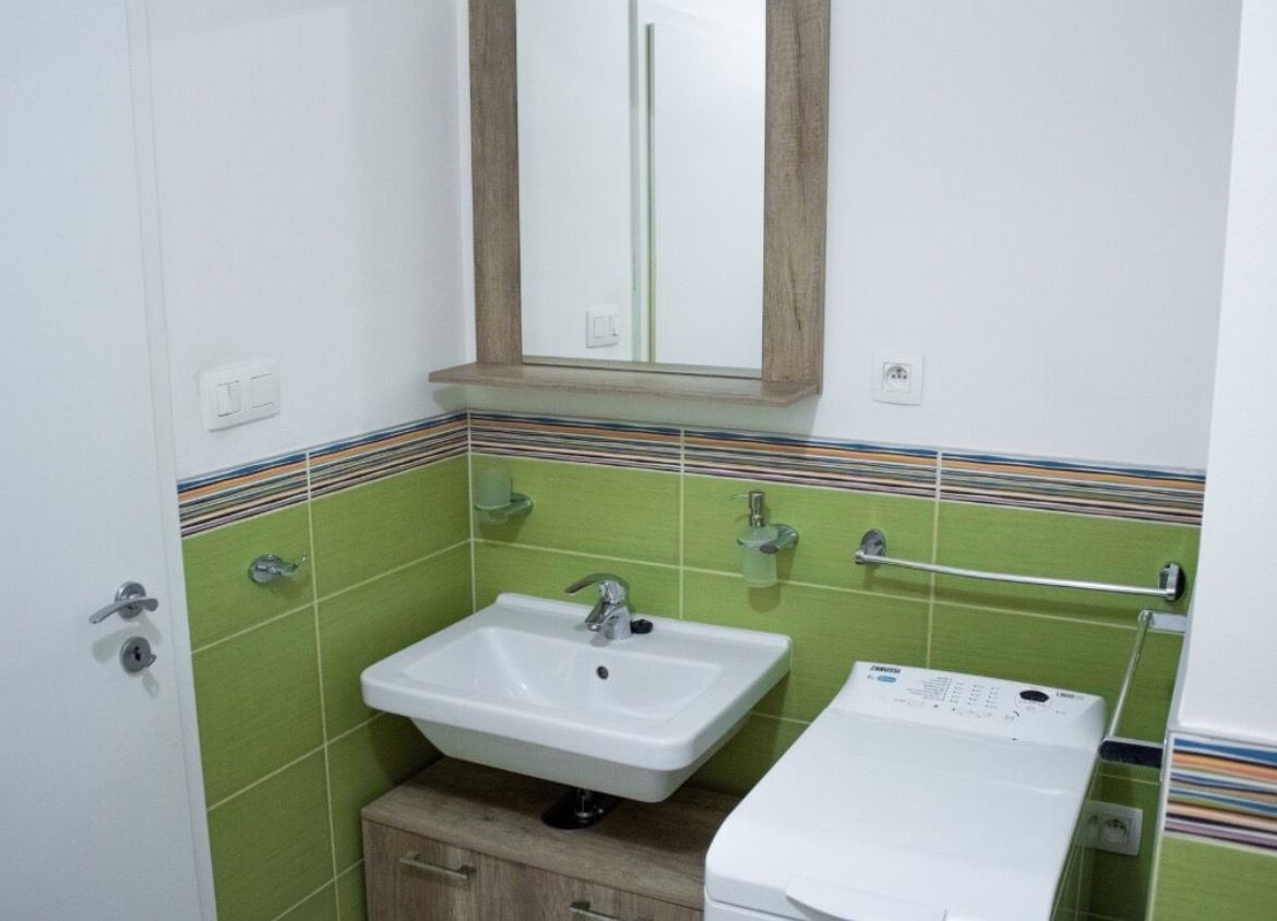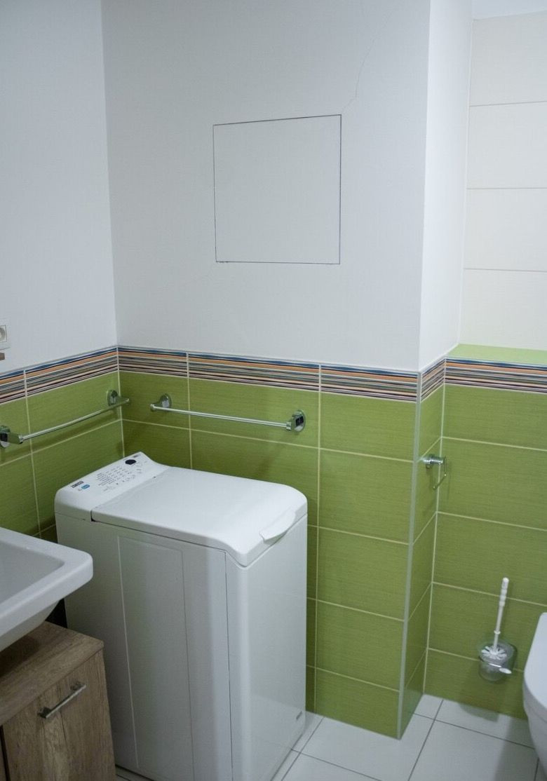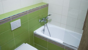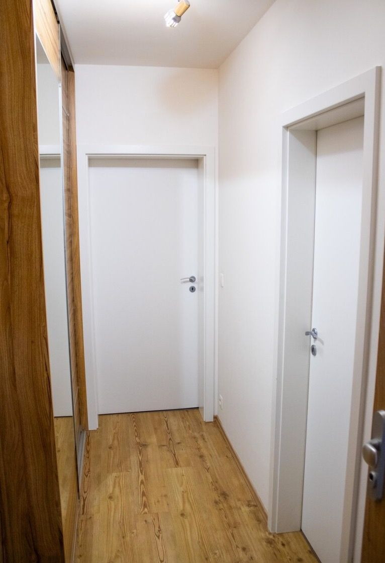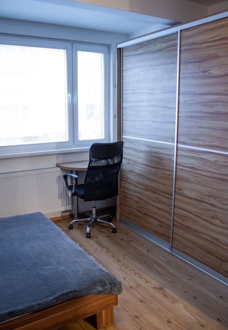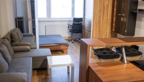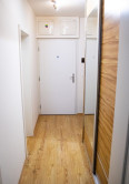 Byt je veľmi dobre dispozične riešený-pozostáva zo vstupnej chodby s botníkom a vstavanými skriňami, obývacej izby čiastočne oddelenej od lôžkovej časti, kompletne vybavenej kuchyne a kúpeľne s toaletou.