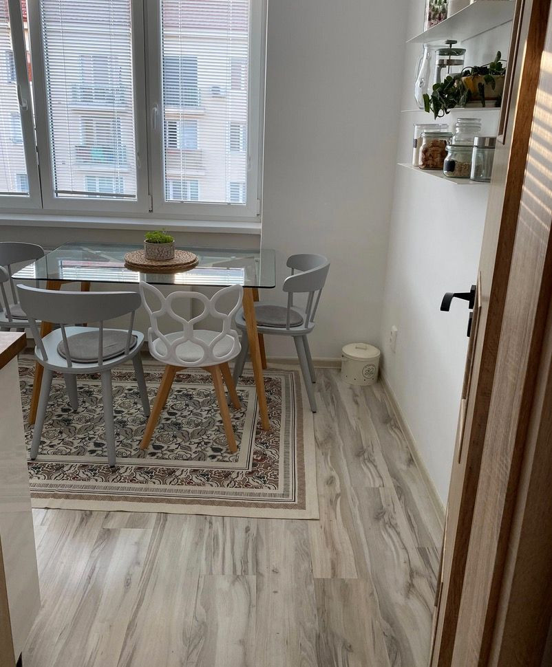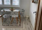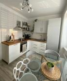 kuchyňa - kuchynská linka s umývačkou riadu, elektrickou rúrou, indukčnou doskou, chladničkou s mrazničkou, jedálenský stôl so stoličkami
