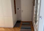 Vstupná hala je priestranná a je vybavená úložným systémom na mieru, ktorý plynuje prechádza do denného priestoru obývacej časti bytu.