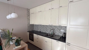 Kuchyňa je vybavená elektrickou varnou doskou a rúrou, vstavanou umývačkou riadu, vstavanou chladničkou a mrazničkou, miktovlnkou a varnou kanvicou. Súčasťou tohto denného priestoru je aj jedálenský stôl a stoličky.