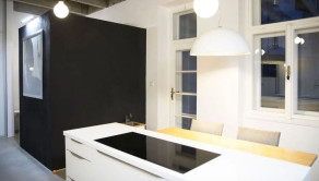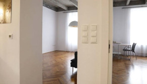 Výnimočnú atmosféru bytu architekt dosiahol kombináciou pôvodných prvkov, dizajnových detailov a dispozičného riešenia zodpovedajúceho moderným nárokom na bývanie. V celom byte sú pôvodné repasované drevené dvojokná a odkryté betónové stropy. Byt prešiel kompletnou a detailnou rekonštrukciou, v rámci ktorej boli vymenené rozvody vody, elektriny a kúrenia. Boli nainštalované vstupné bezpečnostné dvere, nové interiérové dvere, nový plynový kotol (ohrev vody a kúrenie), nové radiátory v 3 izbách a elektrické podlahové kúrenie v druhej časti bytu. Boli vytvorené 2 samostatné kúpeľne s WC (jedna s vaňou a jedna so sprchovým kútom) a walk-in šatník.