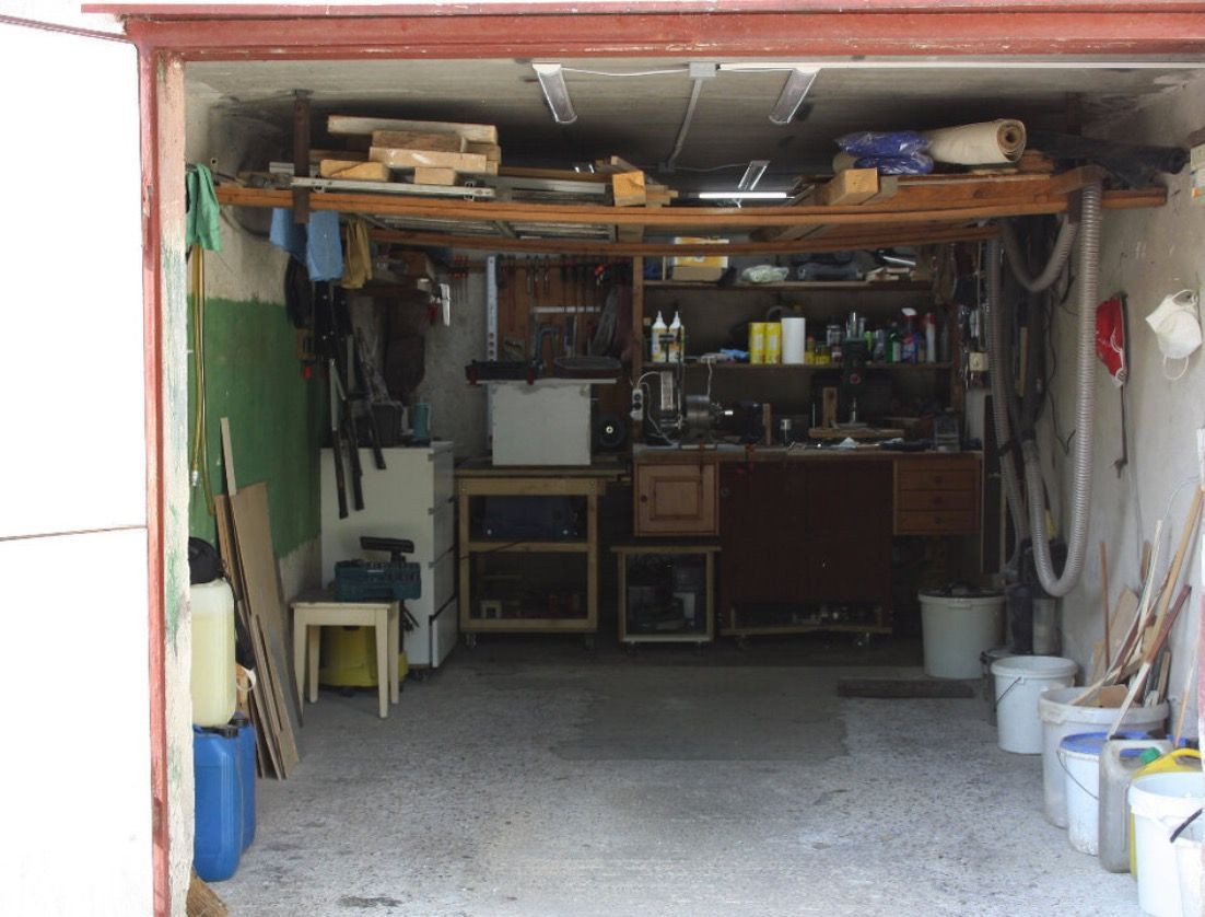 V garáži je elektrika, svetlo, a zásuvky