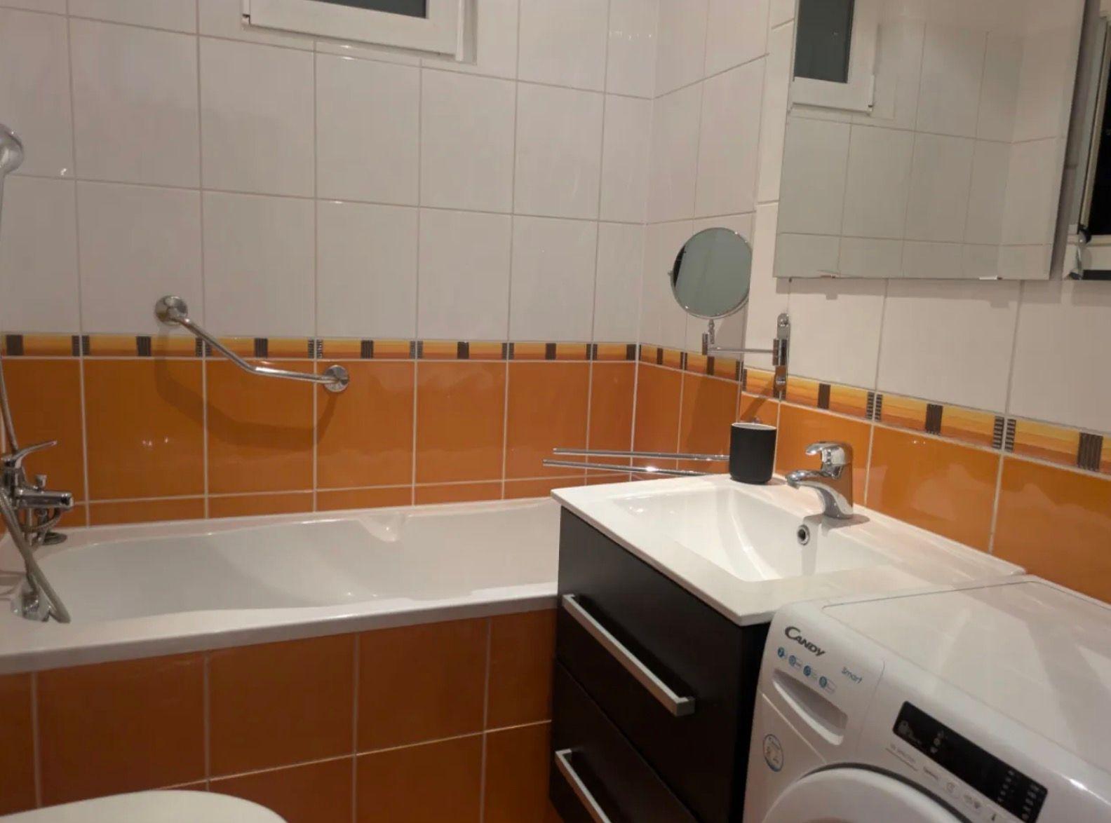 V kúpeľni je vaňa aj sprchový kút, práčka.