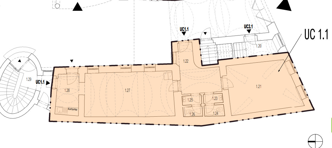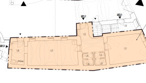prízemie (1.NP): priestor s vlastným vstupom z dvora o celkovej ploche 79,15m2, celok 2-kancelárií s vlastnou kuchynkou a delenými toaletami priamo v priestore.