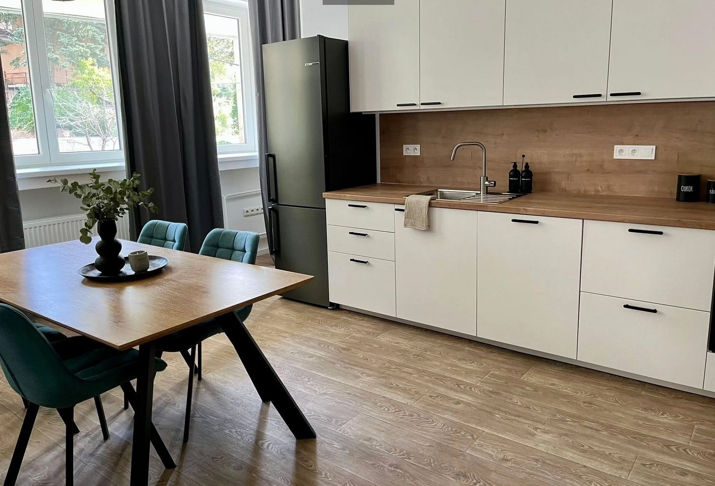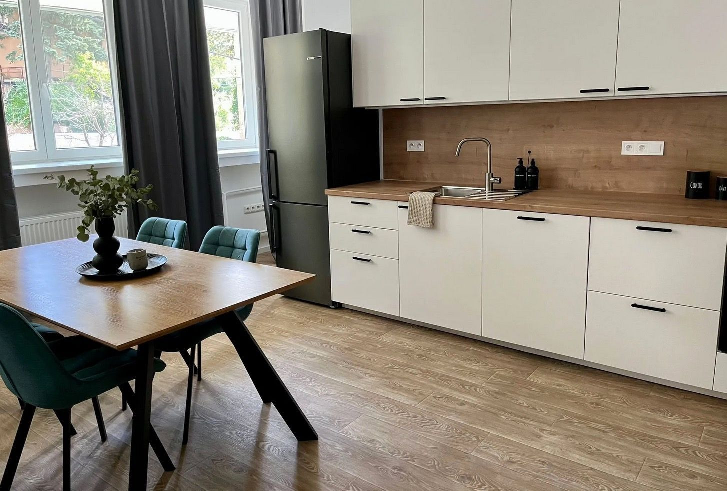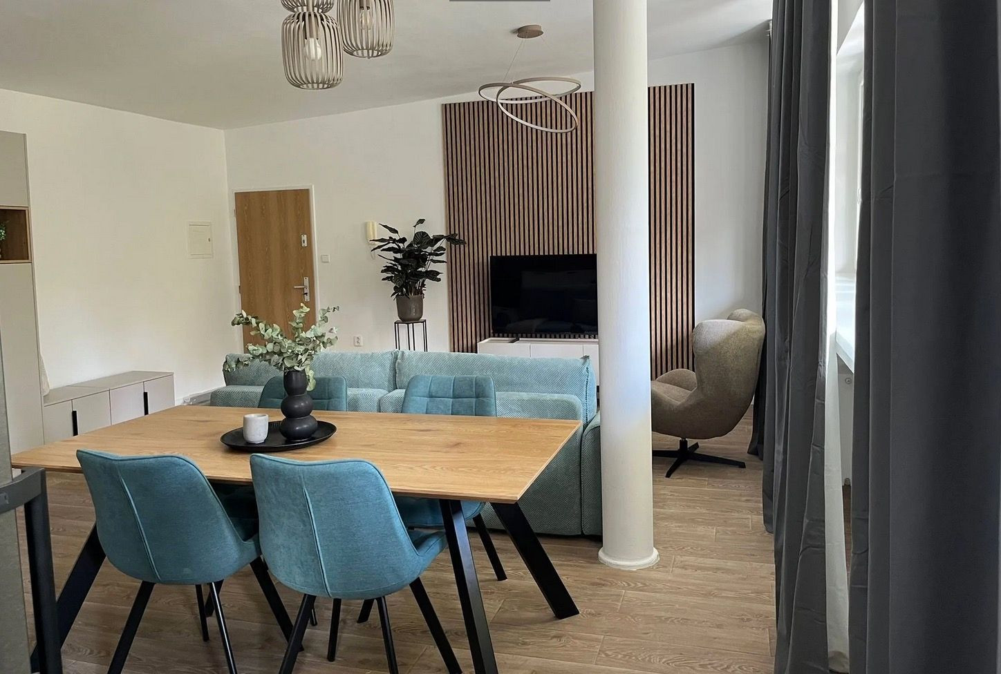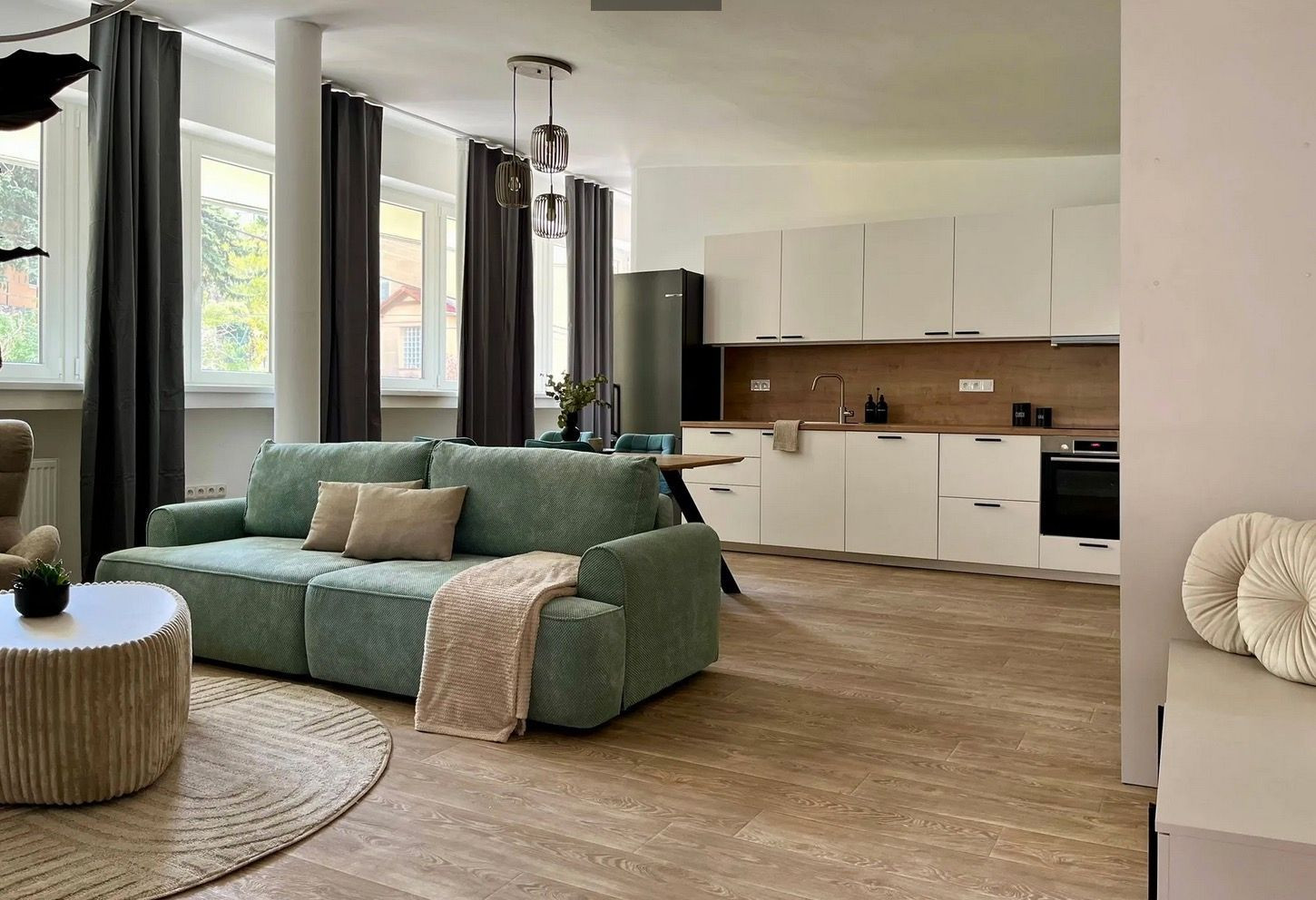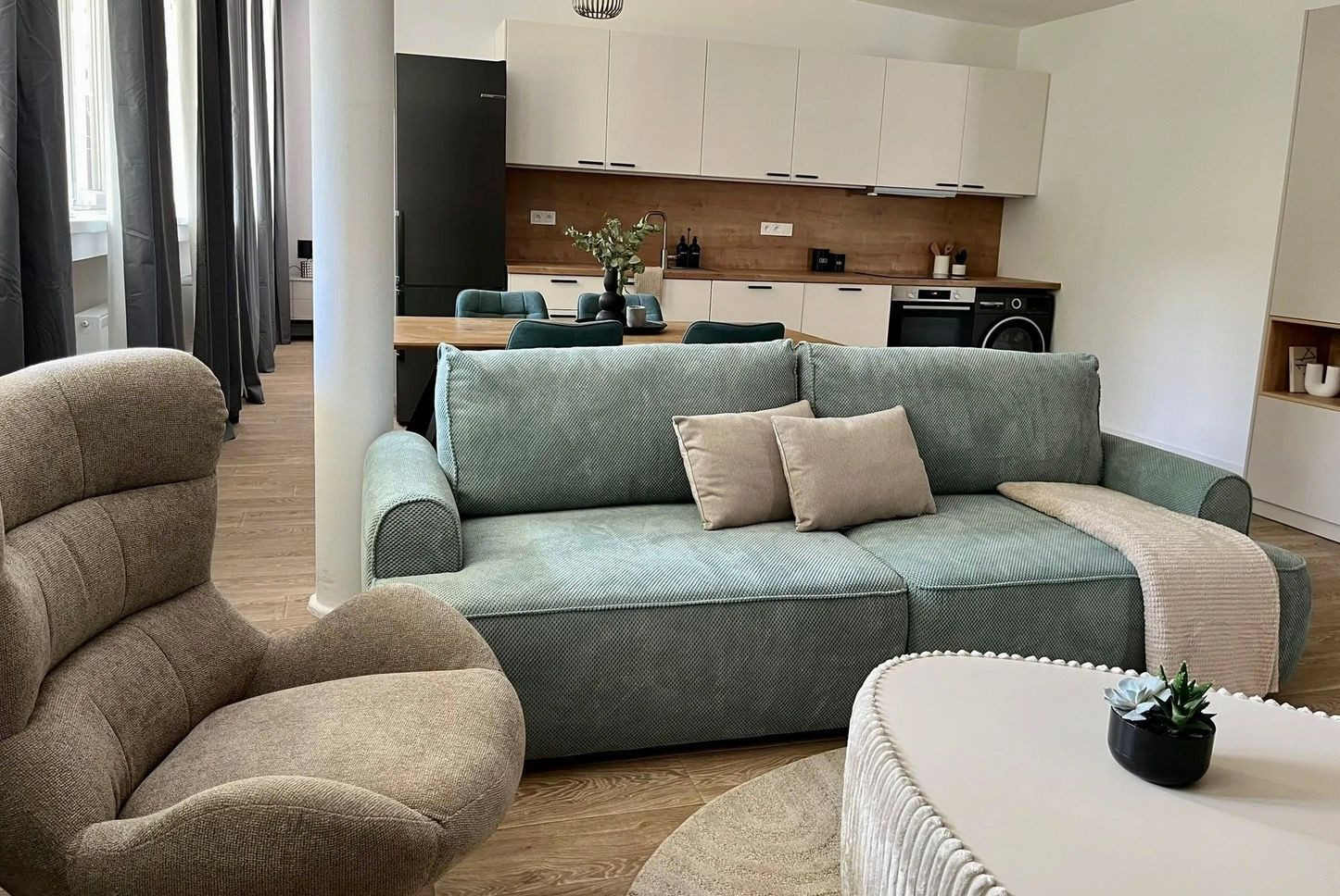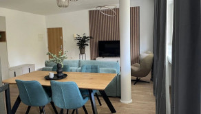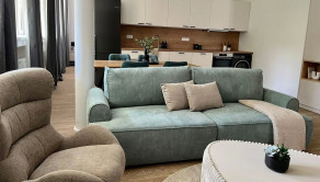 Byt s rozlohou 53 m2 je zariadený v modernom, minimalistickom štýle – čisté línie, zemitá farebnosť, prirodzené svetlo. Každý detail pôsobí vyvážene a vytvára priestor, v ktorom sa dá okamžite cítiť ako doma.