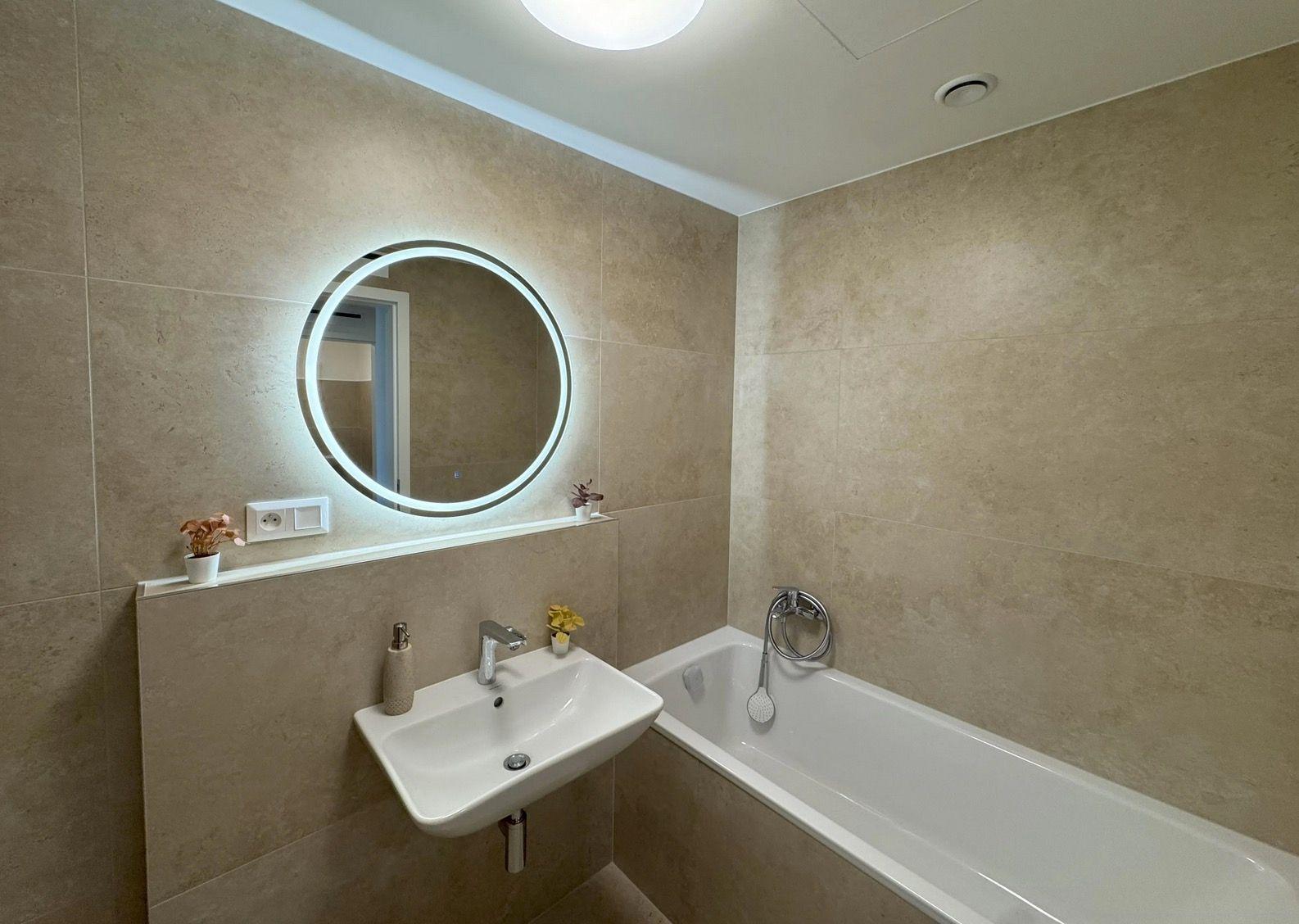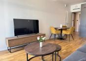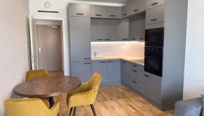 Prenajíma sa kompletne zariadený: práčka, sušička, indukčná varná doska, chladnička s mrazničkou, umývačka, sedačka, TV, šatníkové skrine,... ešte pribudnú kúpeľnové skrinky.
