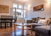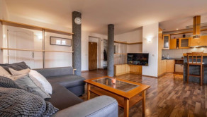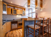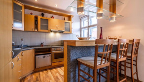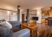 Je kompletne zariadený, vybavený 50"" TV, mikrovlnnou rúrou, rýchlovarnou kanvicou, chladničkou, mrazničkou, kávovarom, umývačkou riadu a práčkou.