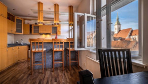 Ponúkame Vám na prenájom 2izbový byt, ktorý sa nachádza na Hviezdoslavovom námestí v historickom Csomovom paláci. Má úžasný výhľad na hrad, a centrum mesta, blízko všetkého (električka, autobus, obchody, atď).