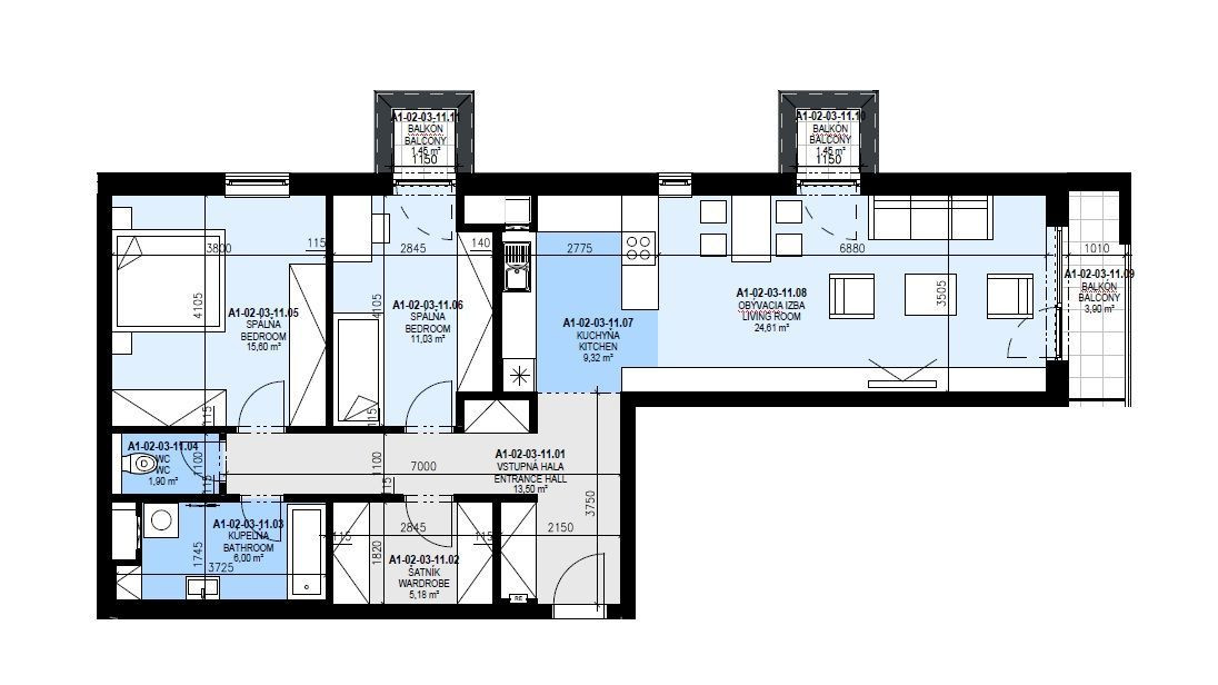 Ponúkame na predaj priestranný 3-izbový byt o výmere 94,72 m² (z toho obytná plocha 87,77 m²) s tromi balkónmi (1,5 m² + 1,5 m² + 4 m²), ktorý patrí medzi rozlohou najväčšie 3-izbové byty v projekte Zóna Mesto – Slnečnice.