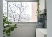 • priestranná obývacia izba prepojená s kuchyňou, komorou a preskleným balkónom