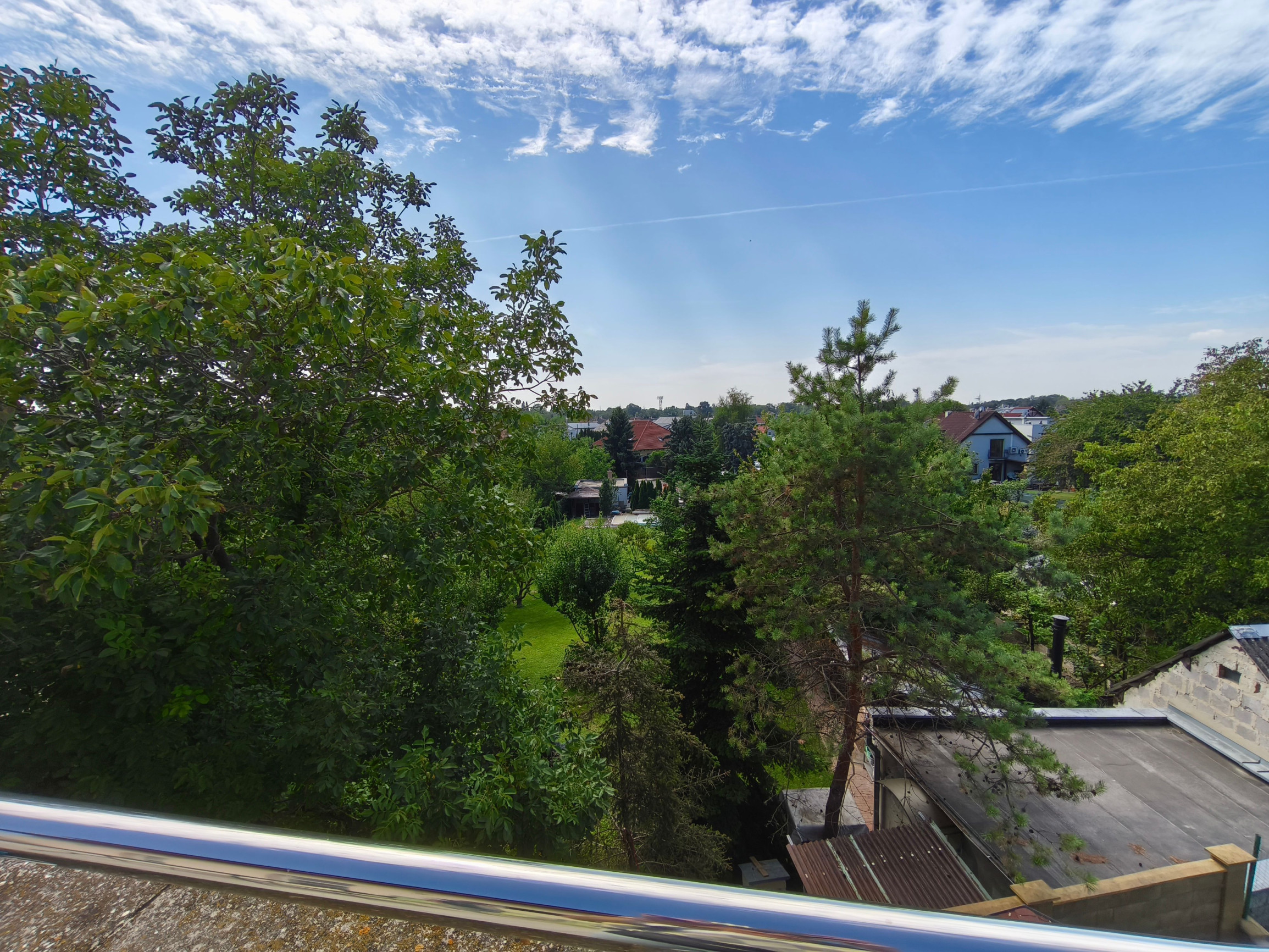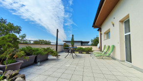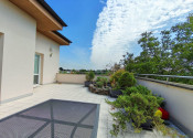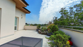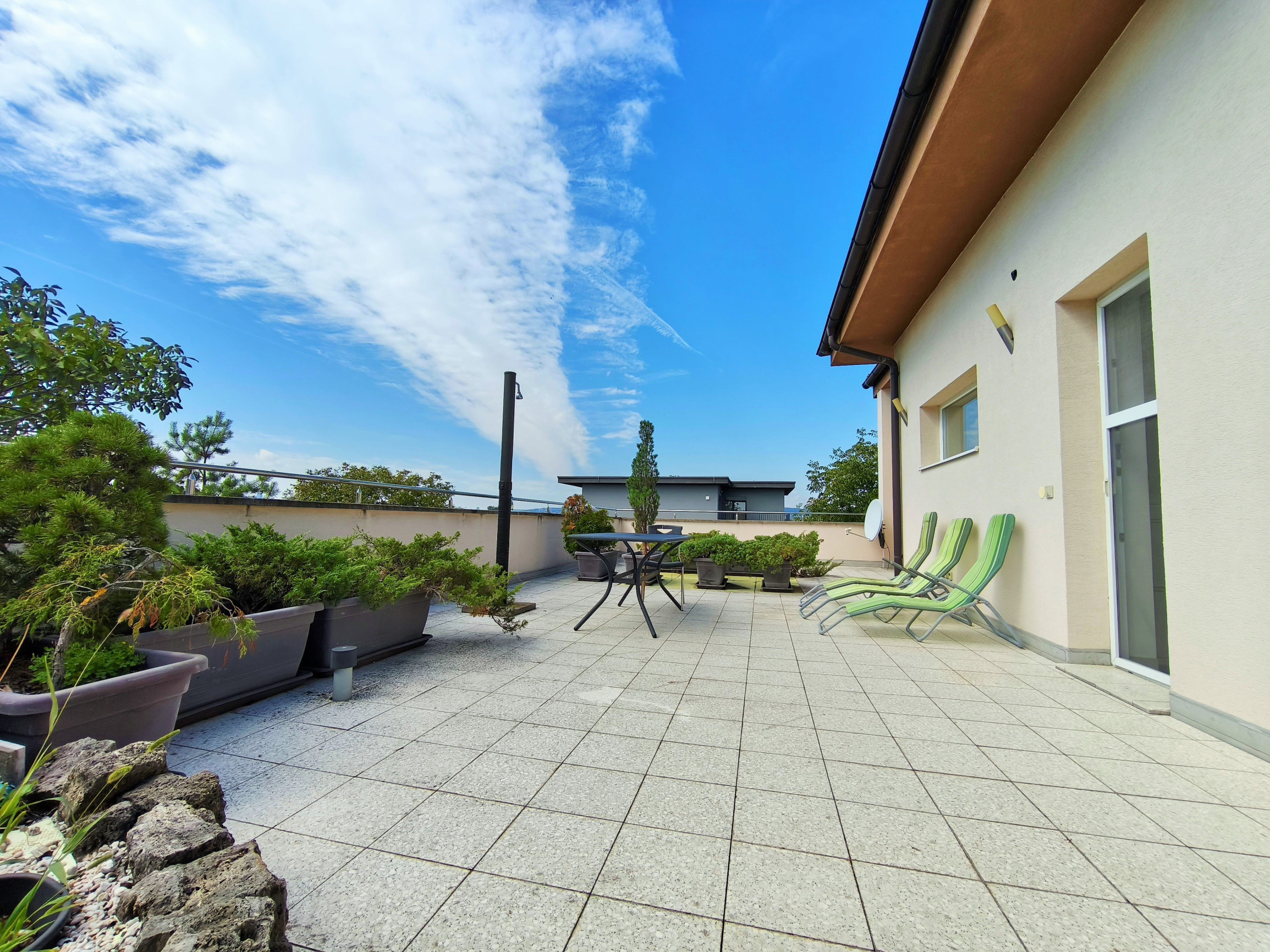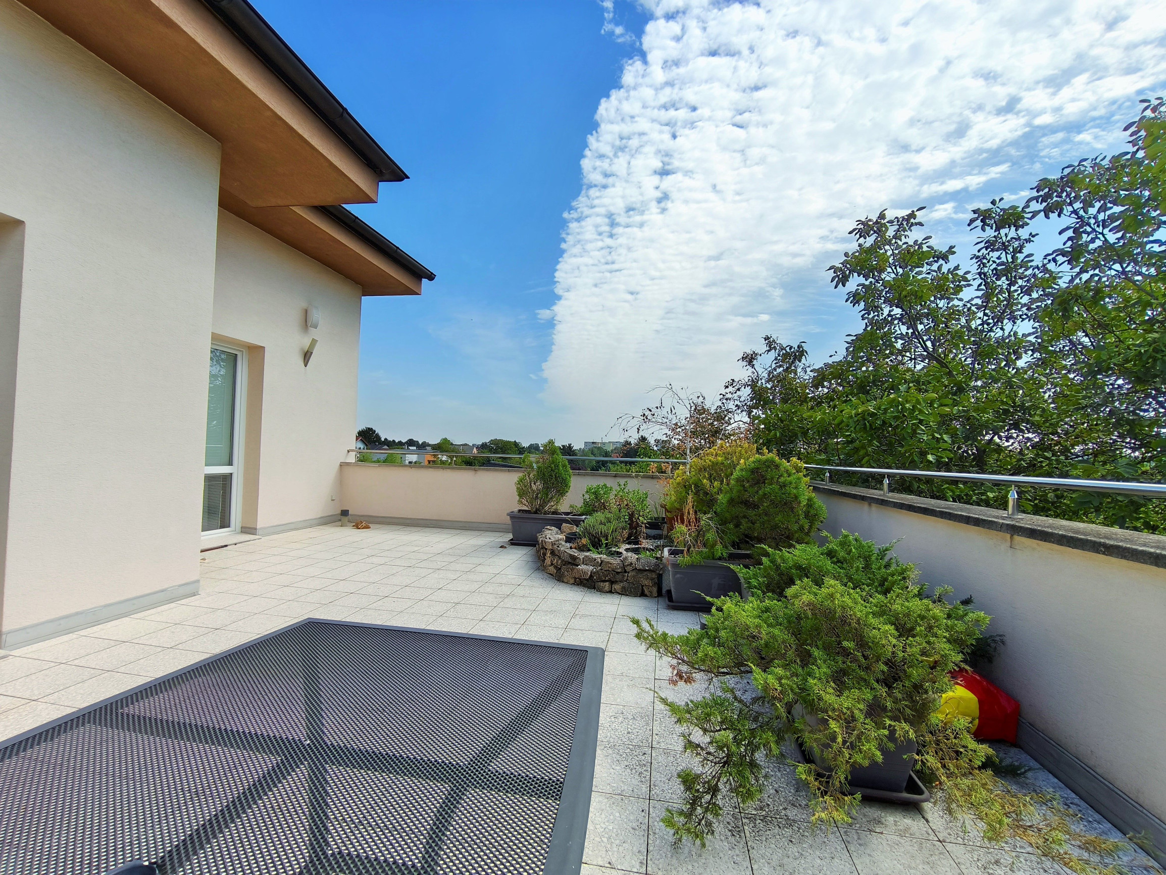 Rozloha bytu 72m2 + terasa 80 m2, byt zaberá celé vrchné poschodie bytového domu, ktorý je posledný v rade Viladomov – susediaci so záhradami okolitých RD. Terasa je celá orientovaná do záhrad okolitých rodinných domov, obklopená zeleňou, poskytujúca maximálne súkromie. Vo Viladome je dokopy len 5 bytov, čo garantuje majiteľovi pohodové rodinné bývanie bez ruchu mesta.
