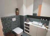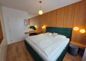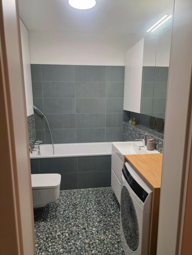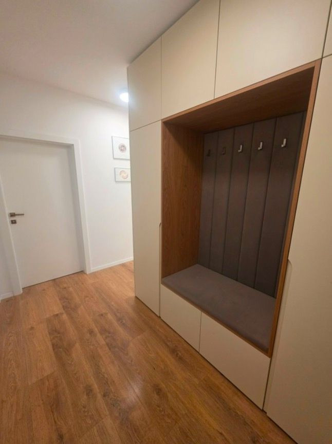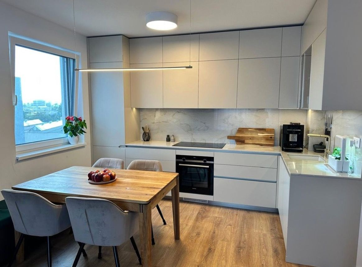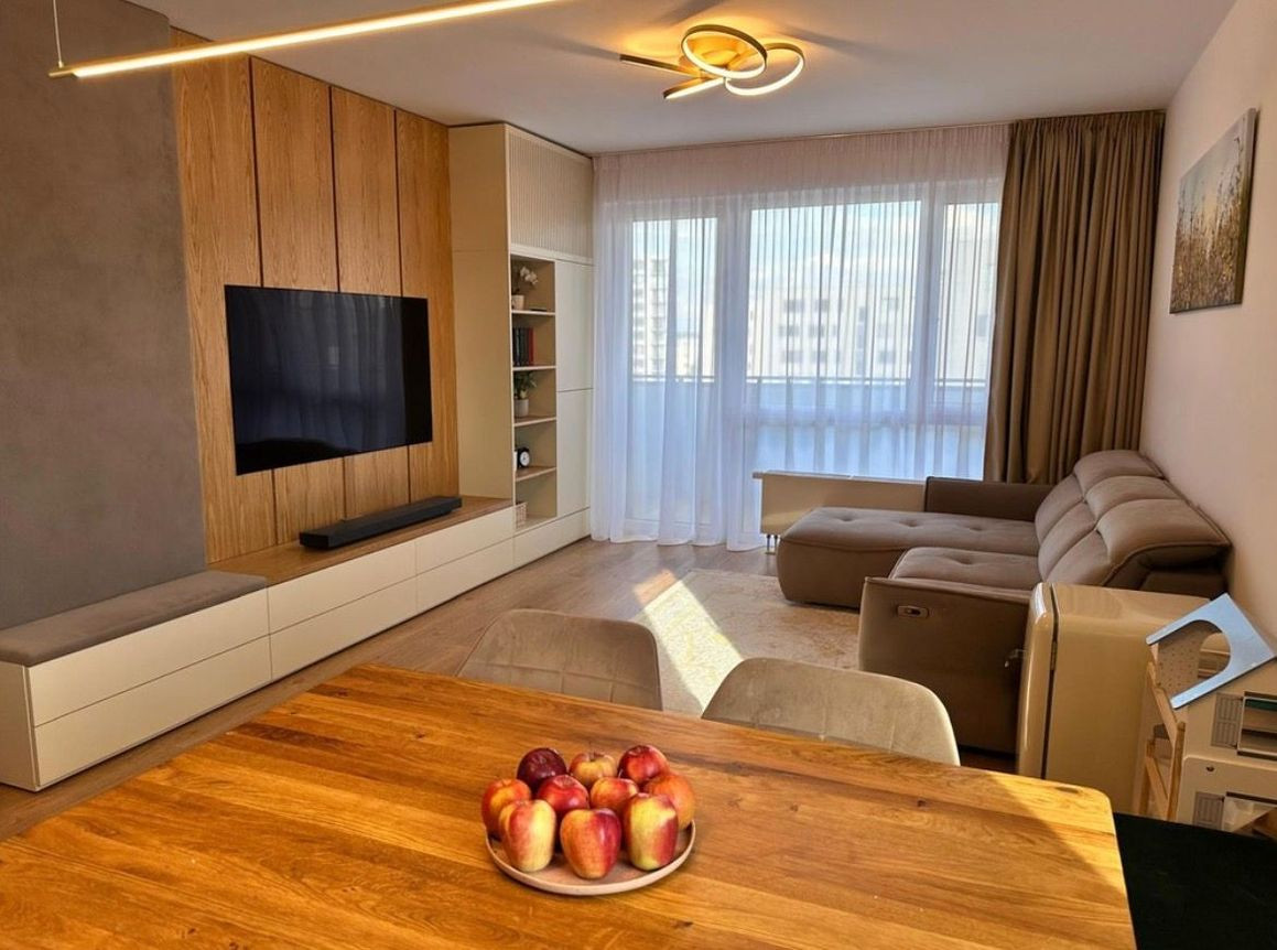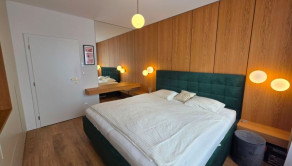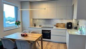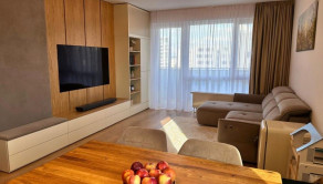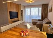 Byt je plne a nadštandardne zariadený. Od nadštandardu developera YIT (podlahy, obklady, dlažba, rekuperacia) cez inštaláciu elektrických vonkajších žalúzií, klimatizácie, pohybových senzorov a videovrátnika, až po vstavaný nábytok na mieru, čalúnenie z rovnakej látky ako sedačka, podsvietenie viacerých skriniek, prirodný kameň - kvarcit na kuchynskej linke, siemens štúdio line smart spotrebiče a dizajnové svietidlá na mieru.