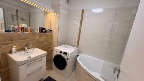 Kúpeľňa disponuje rohovou vaňou, bidetom a práčkou.
