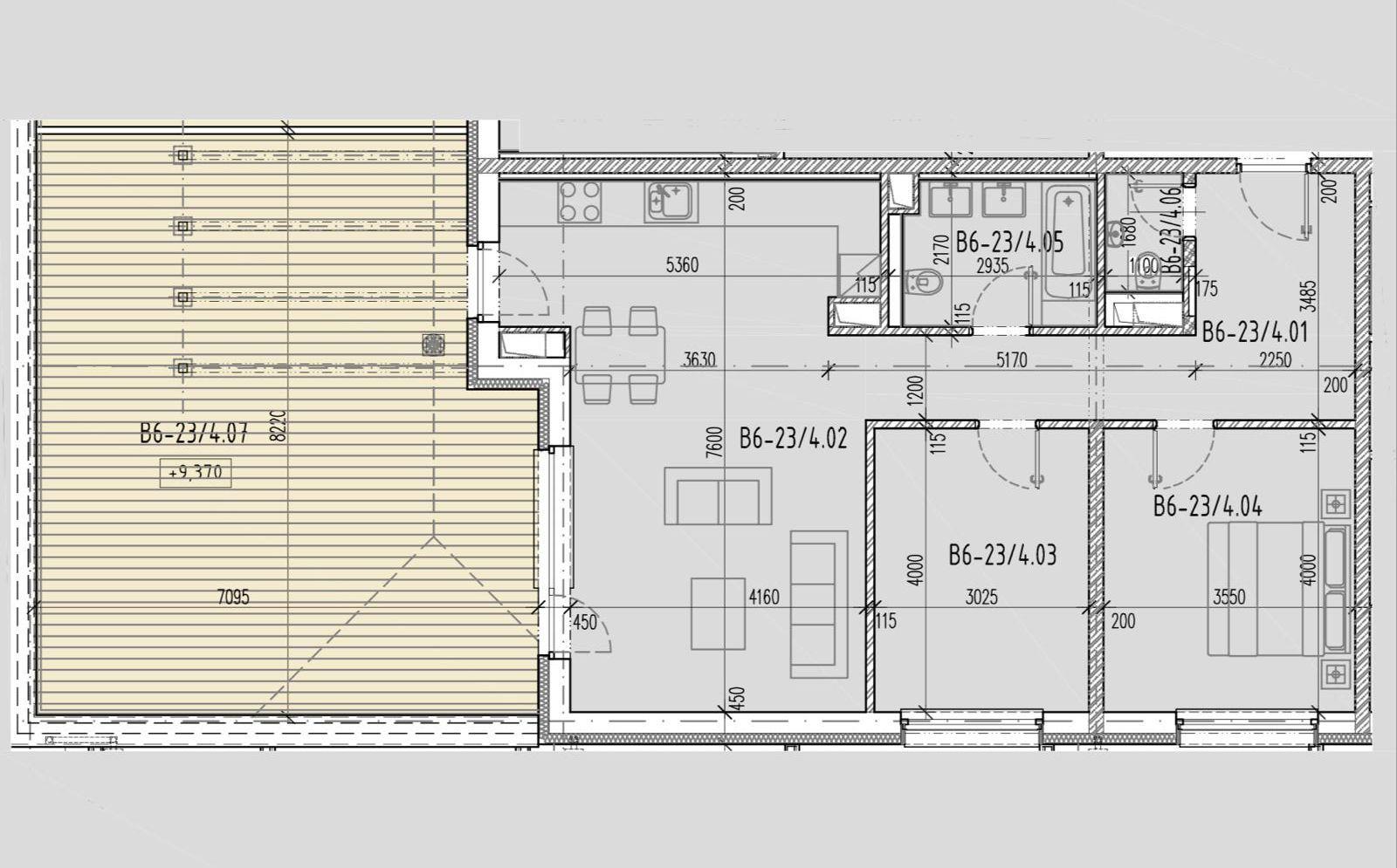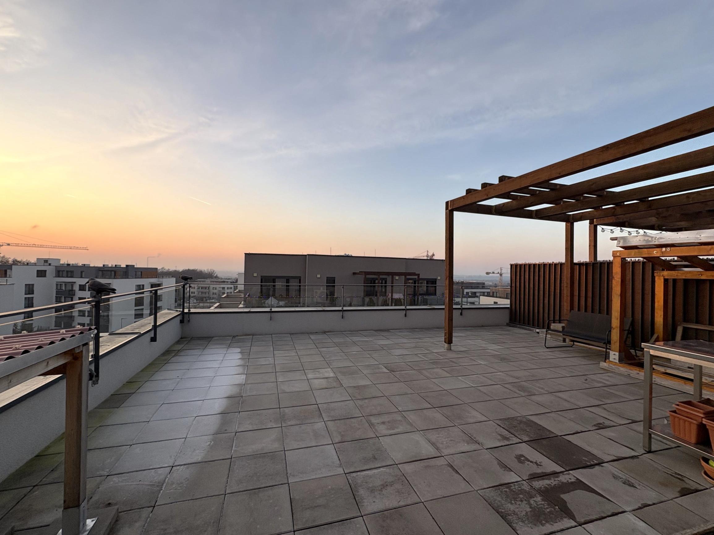 Byt má výmeru 83 m² a jeho veľkým benefitom je priestranná terasa s rozlohou 54,7 m², orientovaná na juh/juhovýchod, vďaka čomu je celý priestor príjemne presvetlený.