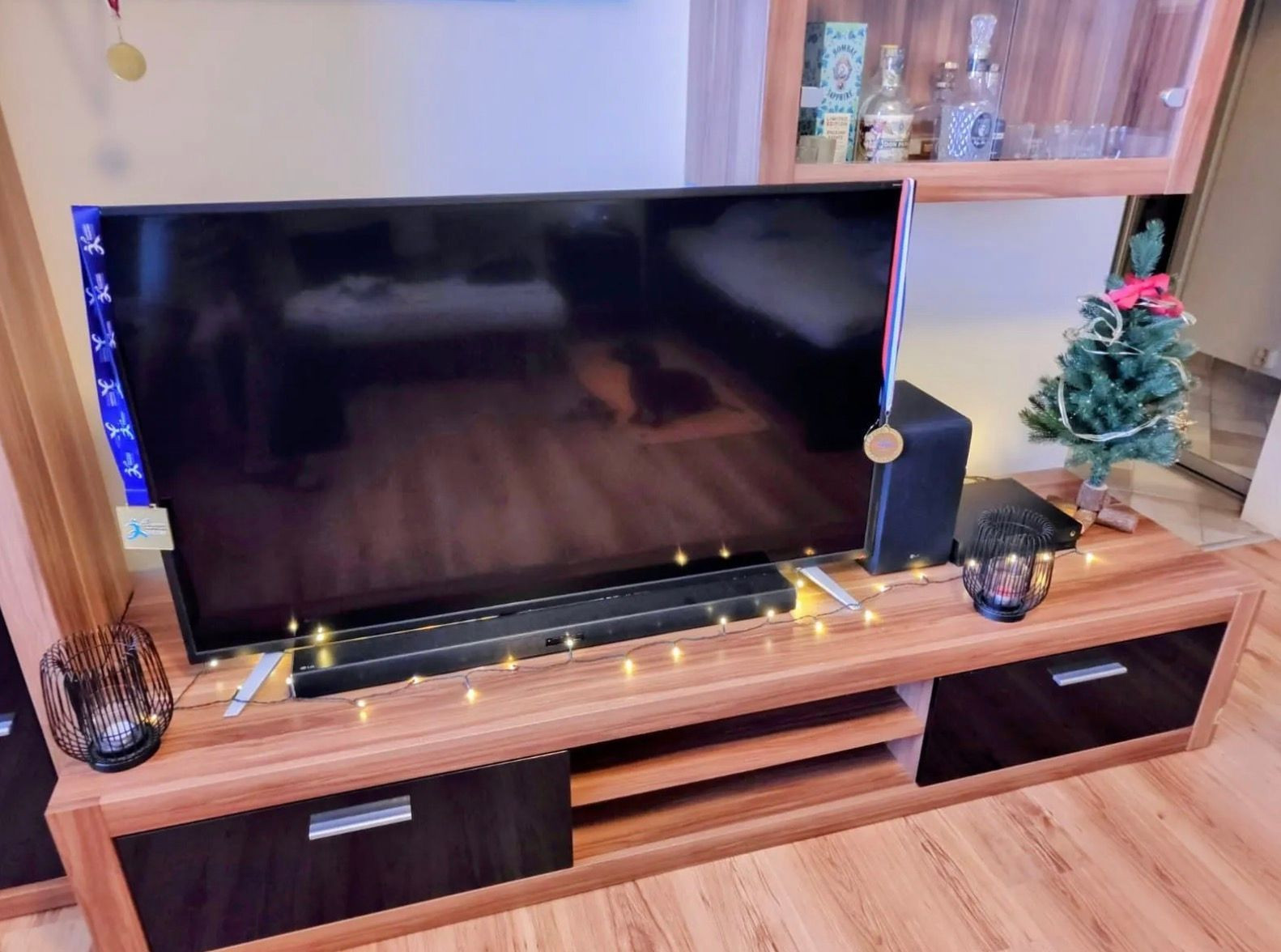 Obývacia izba: Priestranná, so sedačkou, manželskou posteľou, vstavanou skriňou a TV.