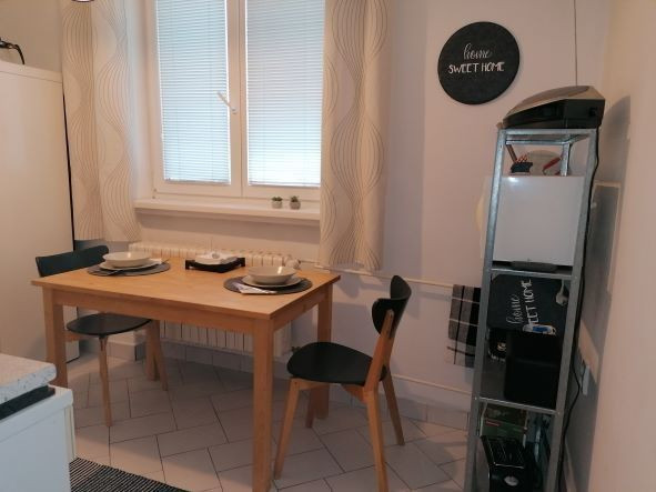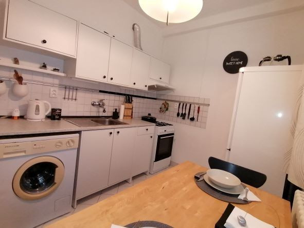Byt je zariadený a vybaveny spotrebičmi :elektricka rúra, mikrovlnka , chladnička s mrazákom, mikrovlnka, práčka.Samostatna kuchyňa, samostatna kúpeľna s vaňou a samostatne WC.