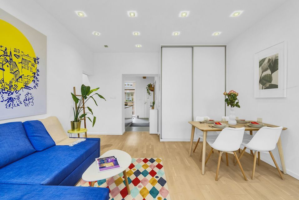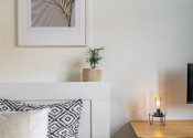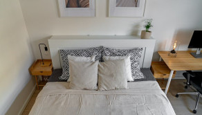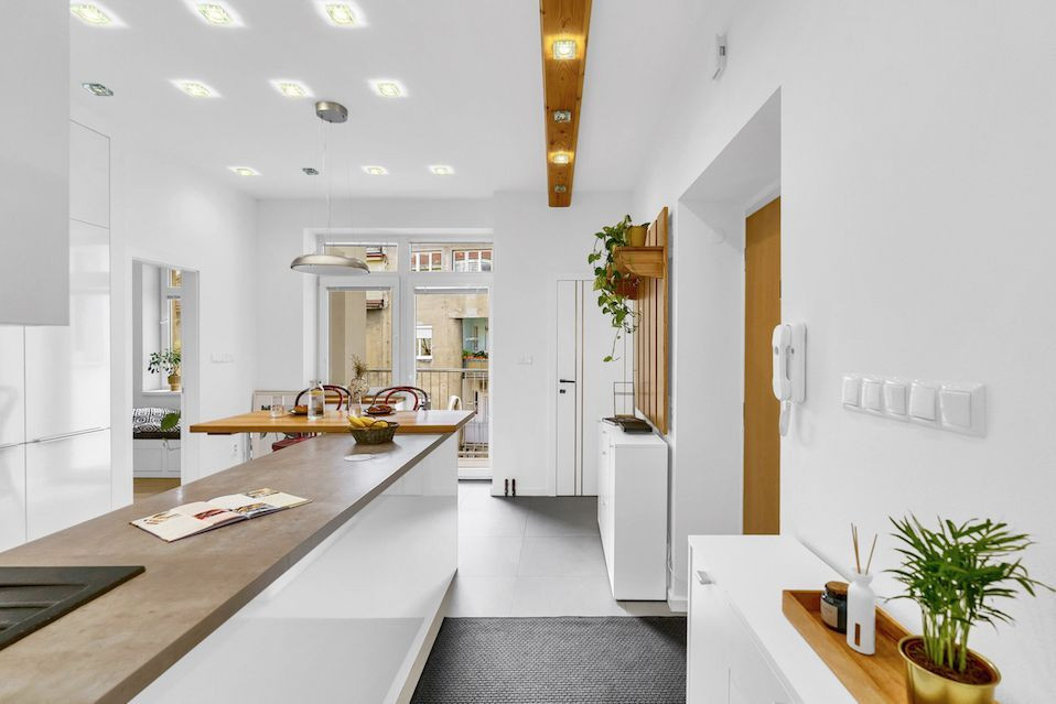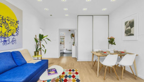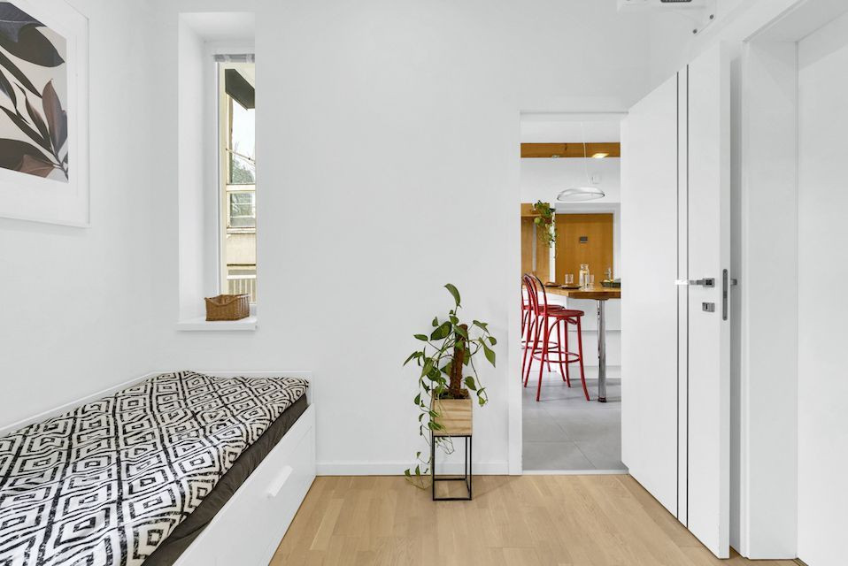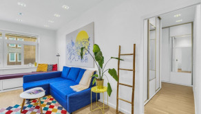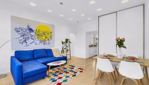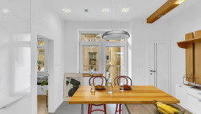 Byt prešiel kompletnou rekonštrukciou v spolupráci s architektom, vďaka čomu vznikla vzdušná a funkčná dispozícia so skrytými prvkami a množstvom úložného priestoru.