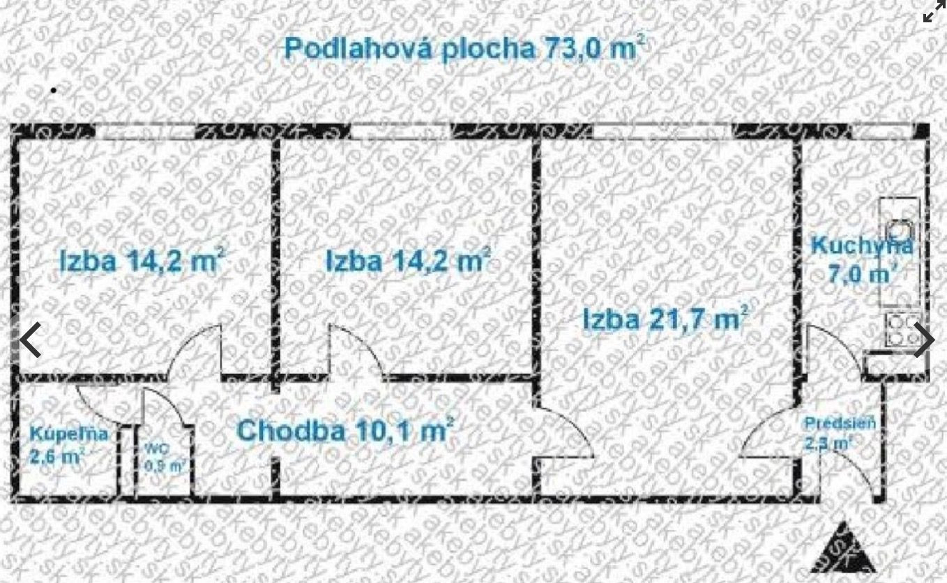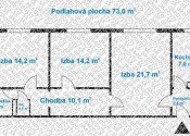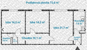 Výmera: 73 m2 (čistá plocha bytu) + 4,5 m2 balkón + 2,9 m2 pivničná kobka (spolu 80,4 m2)