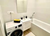 rozkladacia posteľ, vstavaný roldor ( vstupny priestor), pračka, chladnička s mrazničkou, indukčná várna doska, mikrovlnka, rýchlovarná kanvica, vysávač, kuchynský riad a klimatizácia.