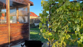 • Na záhrade je niekoľko ovocných stromov a kríkov, vinič a okrasné rastliny.