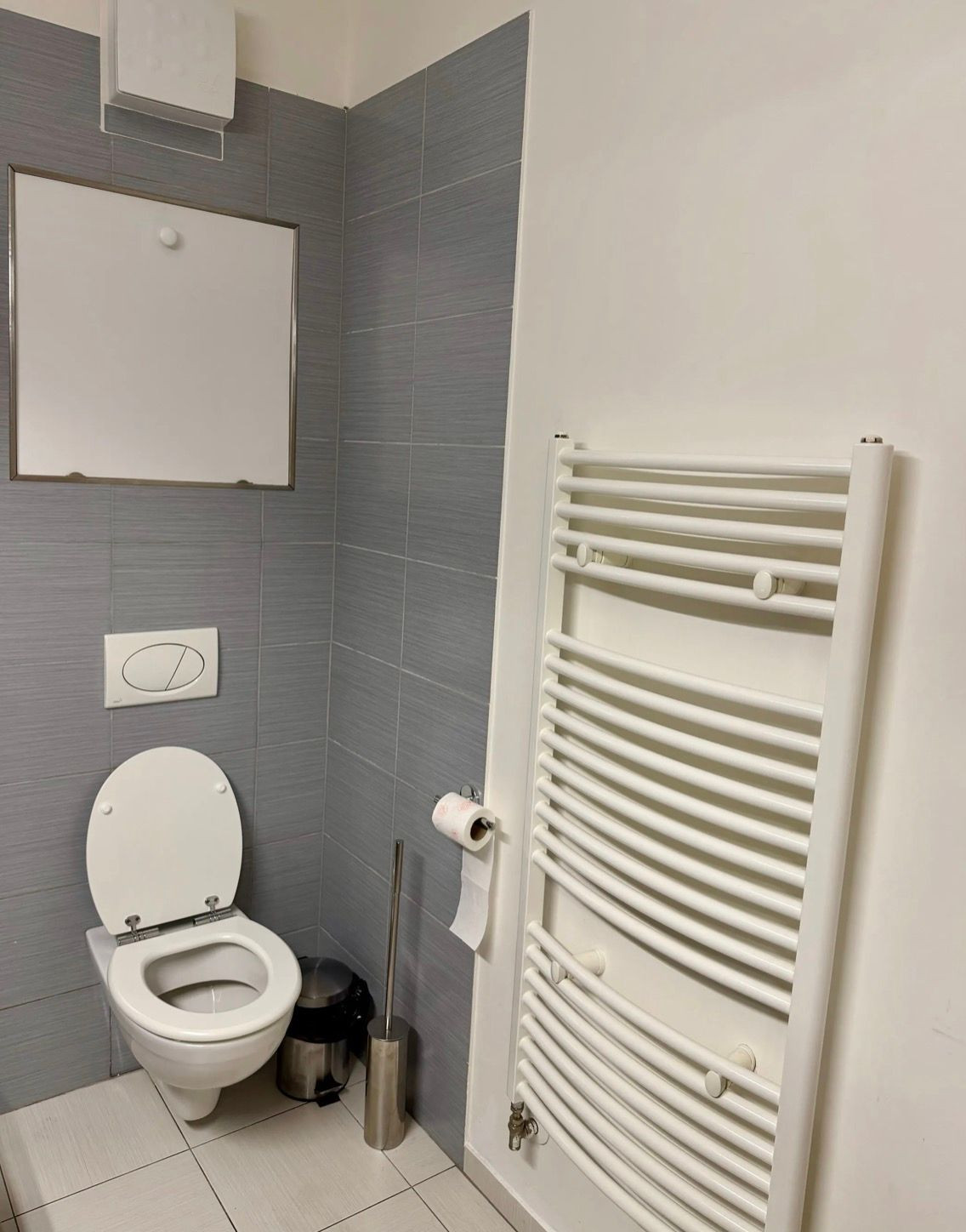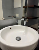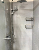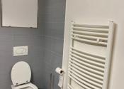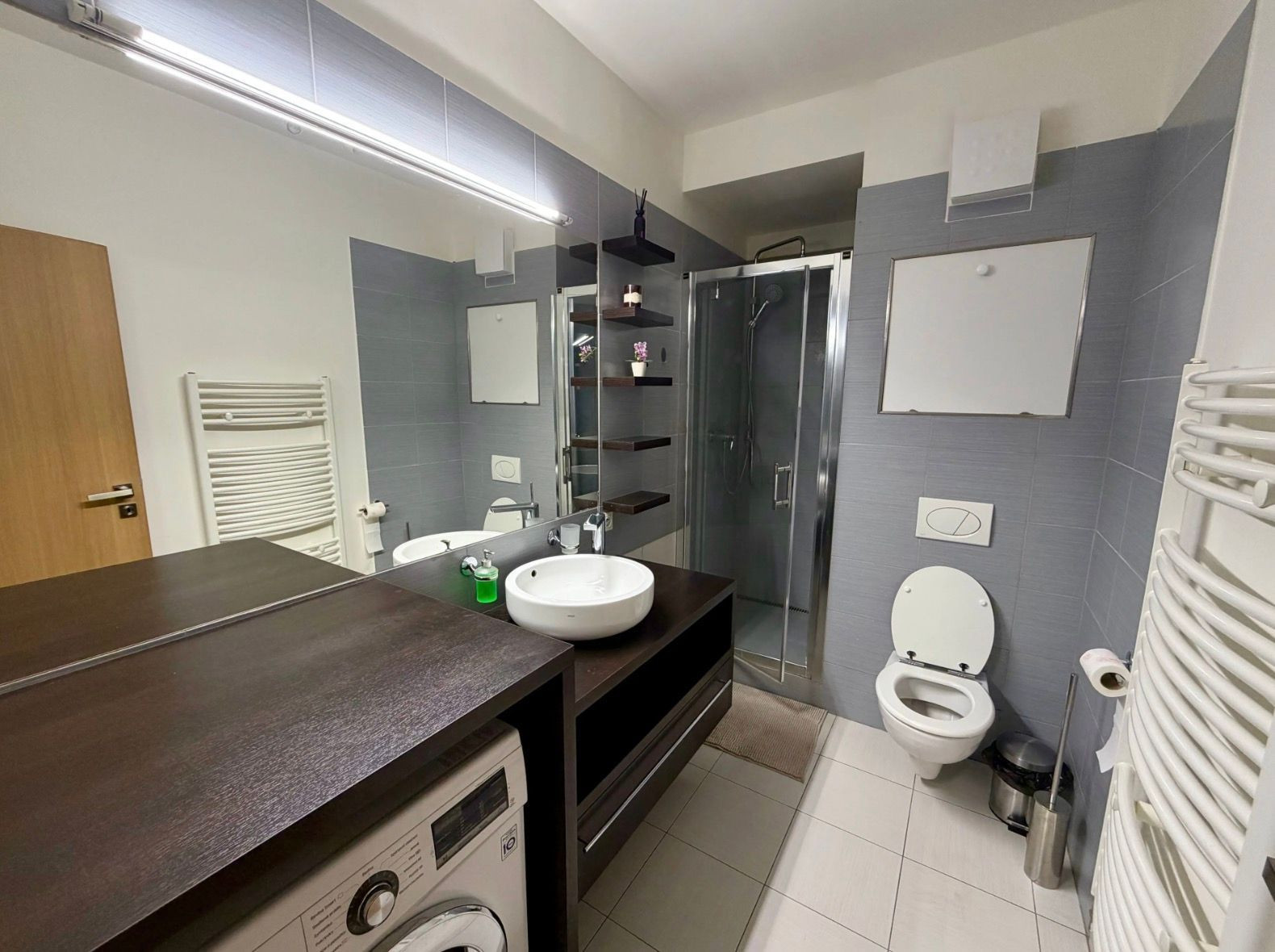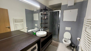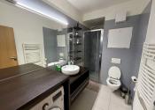 V priestrannej kúpeľni sa nachádza toaleta, sprchový kút a práčka.