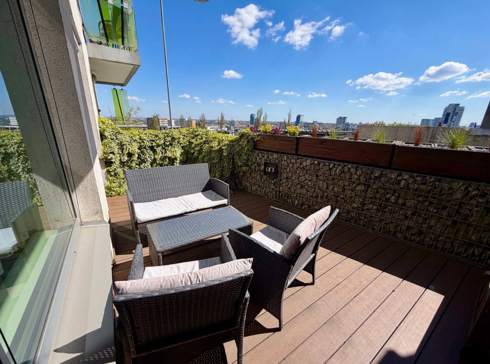 Od jari do jesene funguje terasa ako prirodzené predĺženie bytu - ideálne miesto na rannú kávu, pestovanie byliniek či večerný relax.