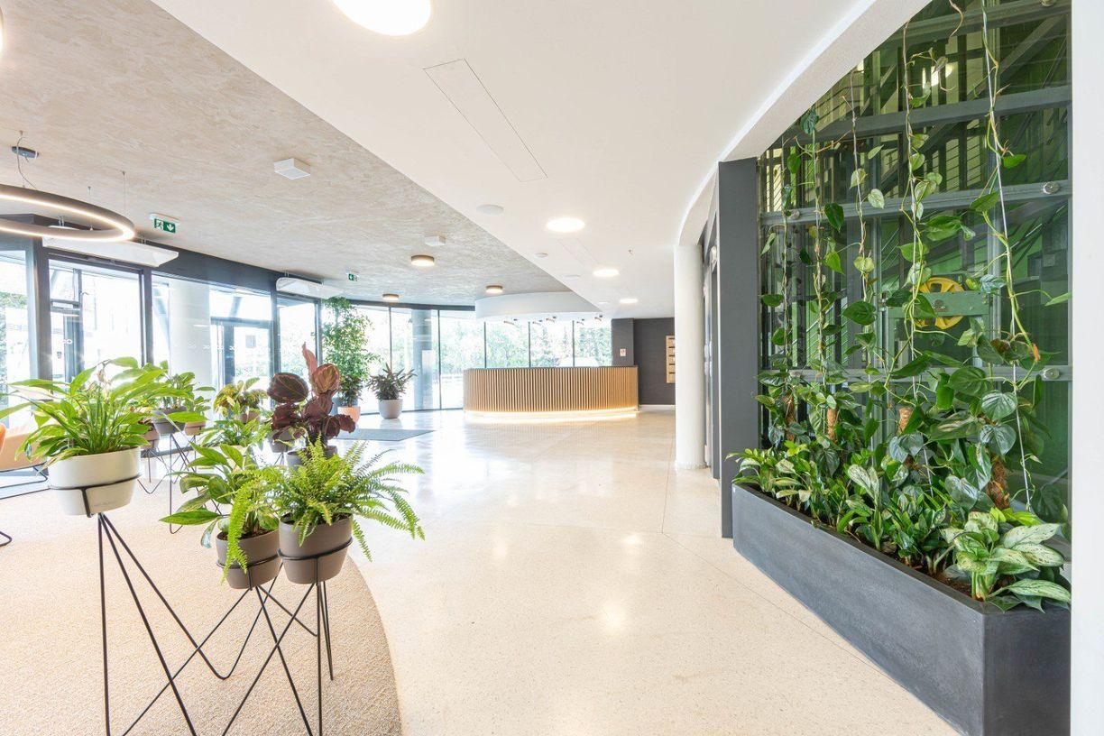 Benefity: Chladené stropy, vonkajšie hliníkové žalúzie, dvojitá fasáda zabezpečujúca odhlučnenie, možnosť prirodzeného vetrania – otvárateľné okná, dostatok parkovacích státi, prenájom skladov priamo v budove...