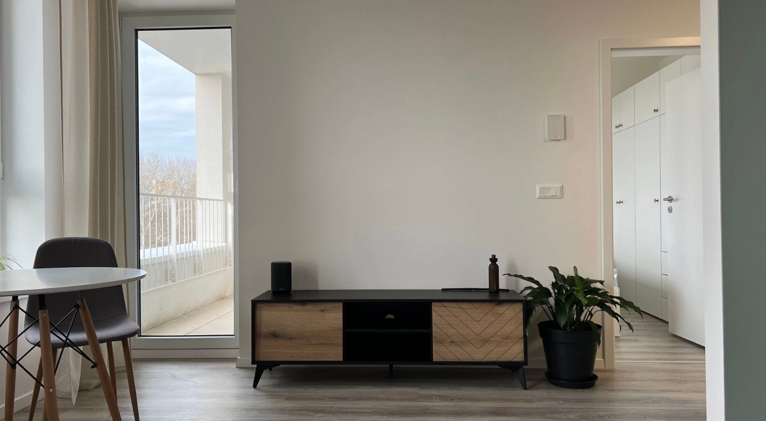 Byt je navrhnutý s dôrazom na svetlosť a efektívne využitie každého štvorcového metra.
