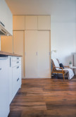 Byt je po kompletnej vkusnej rekonštrukcii, predáva sa spolu so zariadením, ktorého väčšina bola vyrobená na mieru tak, aby byt efektívne využil celý priestor.