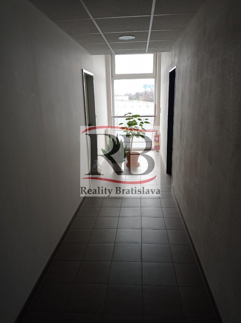 Voľný kancelársky priestor s výmerou 23,4 m² (rozmery cca 7,8 × 3 m) sa nachádza v administratívnej budove na Kopčianskej ulici.