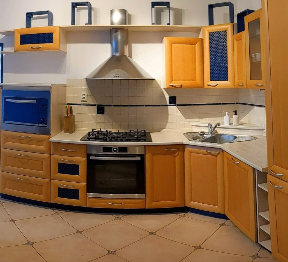 • kuchyne, plne vybavenej vstavanými spotrebičmi (umývačkou, chladnčkou s mrazničkou, elektrickou rúrou, plynovým 5-horákovým sporákom, mikrovlnkou...)