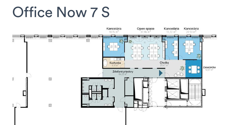 K dispozícii sú priestory na 7.NP - OFFICE NOW E,S,G:
