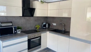 Dom je vybavený podlahovým kúrením pre komfort a nízke prevádzkové náklady, klimatizáciou pre pohodlie počas celého roka a vonkajšími žalúziami pre súkromie a tienenie. Kuchyňa je zariadená vstavanými spotrebičmi vrátane varnej dosky, elektrickej rúry, digestora a umývačky riadu. Prístavba môže slúžiť ako sklad alebo technická miestnosť. Slnečný pozemok a moderné vybavenie zaručujú pohodlné a praktické bývanie s nízkymi prevádzkovými nákladmi.