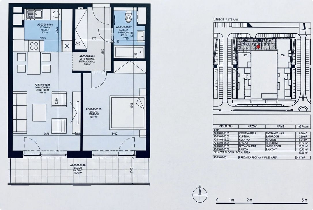 Byt má výmeru 52 m2 + priestranný 11 m2 balkón, ktorý poskytuje príjemný priestor na oddych. Vďaka južnej orientácii je byt počas celého dňa krásne presvetlený a pôsobí veľmi príjemne a vzdušne.