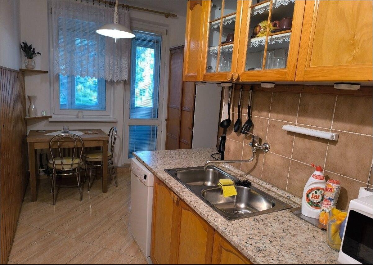 Byt je kompletne zariadený – k dispozícii je práčka, chladnička, mikrovlnná rúra a umývačka riadu. Je čistý, svetlý a tichý, s plastovými oknami a plávajúcou podlahou.
