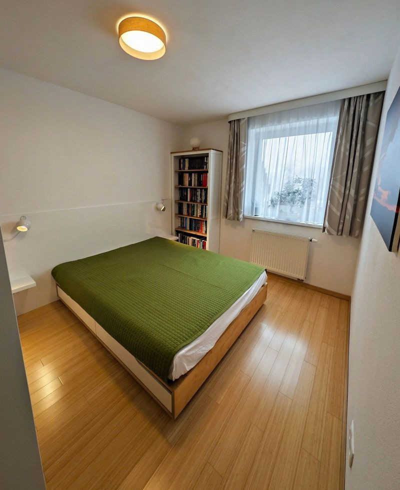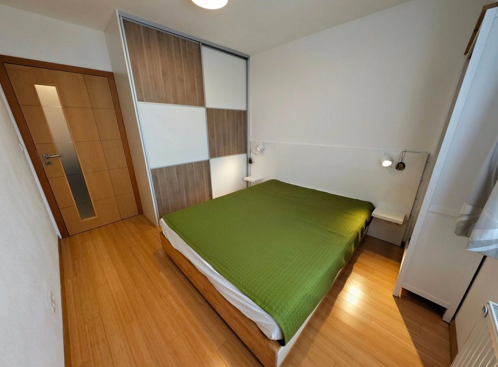 V spálni sa nachádza knižnica a vstavaná skriňa, pod posteľou je ďalší úložný priestor. V spálni sa nachádza podlaha z prírodného bambusu.