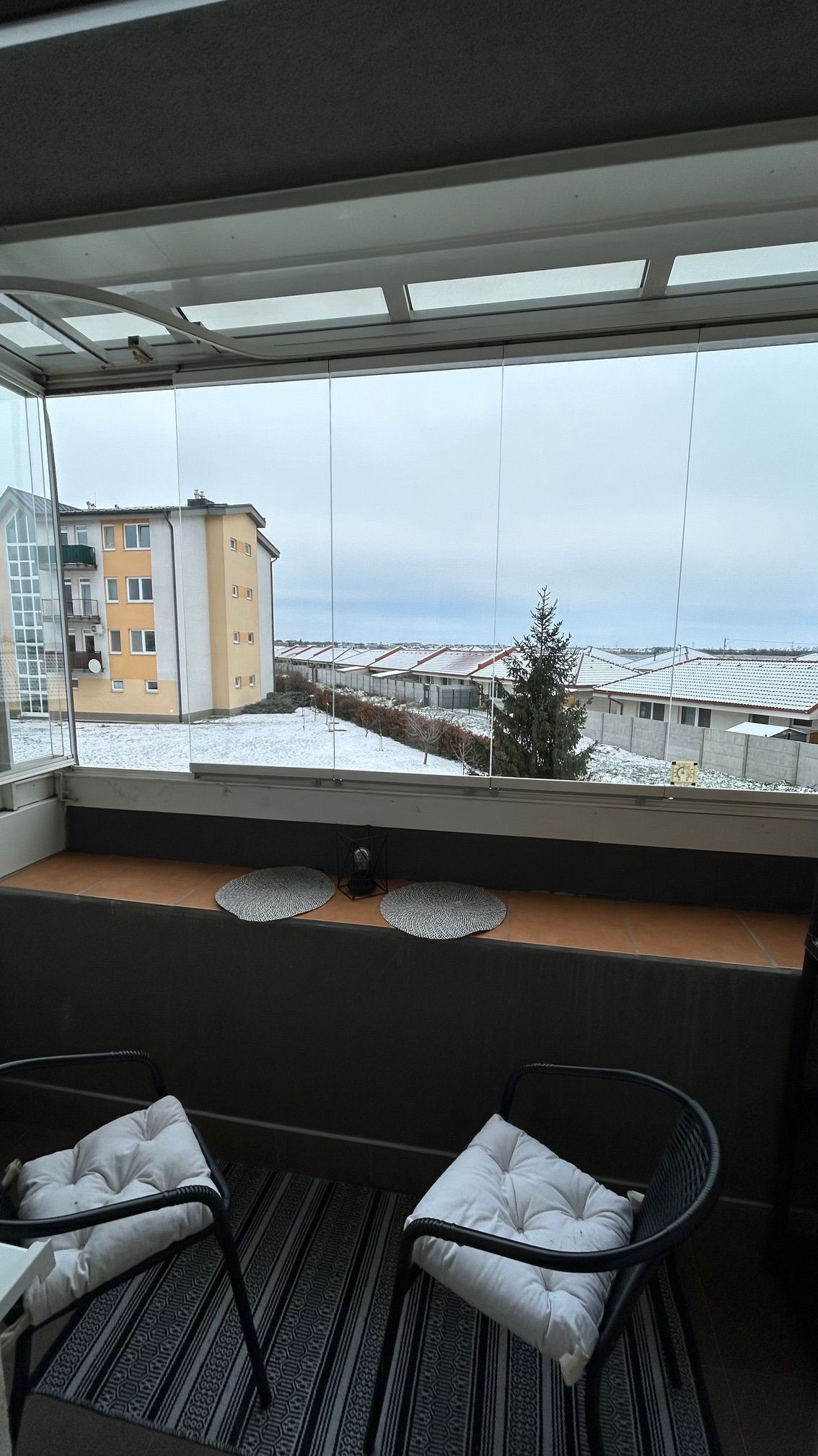 Súčasťou bytu je presklená uzavretá loggia (3,6 m²), ktorá poskytuje celoročné využitie. Byt je orientovaný na východ, čo zabezpečuje príjemné ranné svetlo a zároveň chráni pred prehrievaním počas letných mesiacov.