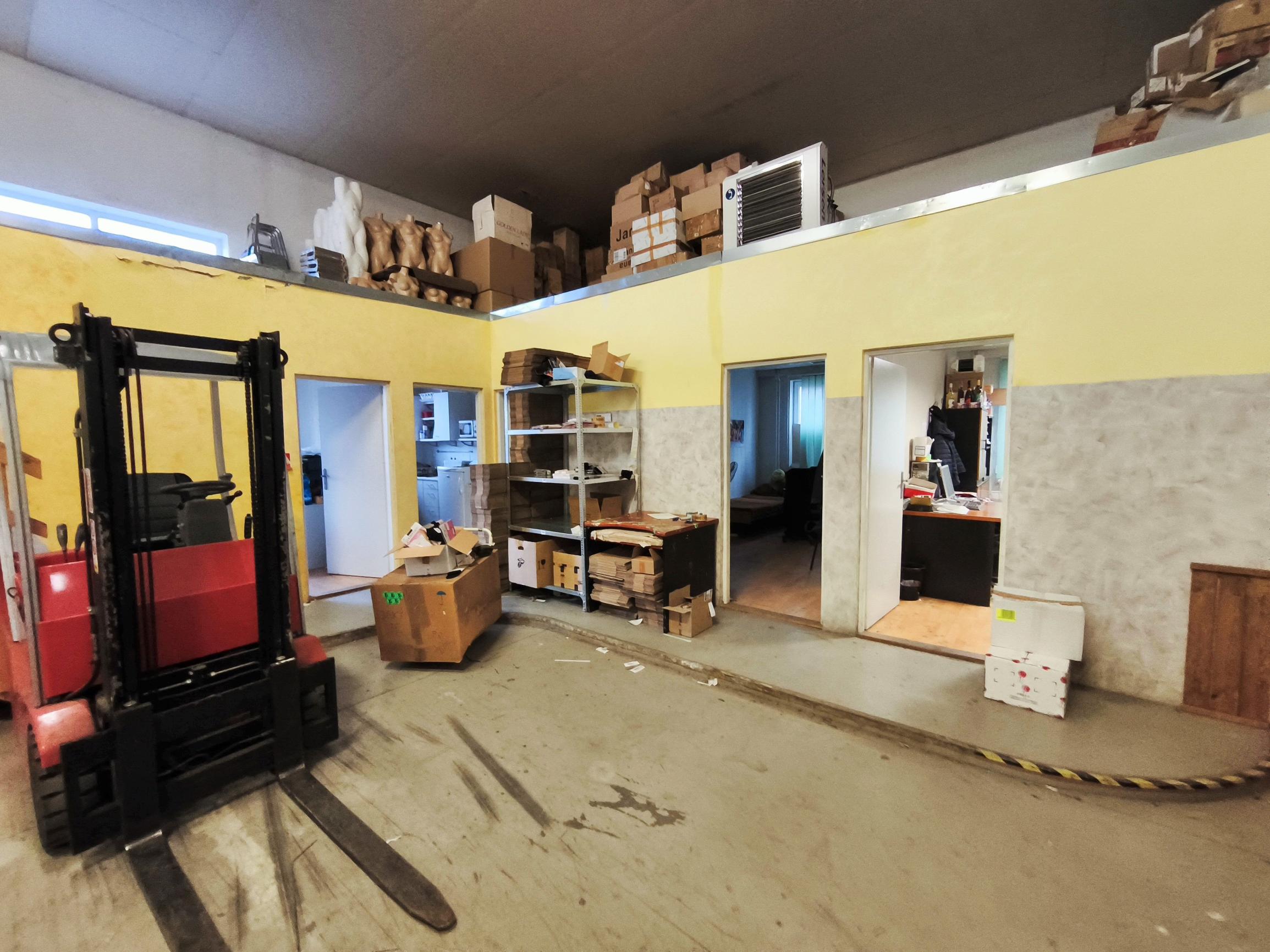 Zázemie je priamo v sklade (kancelárie, toaleta, sprcha, kuchynka).