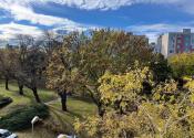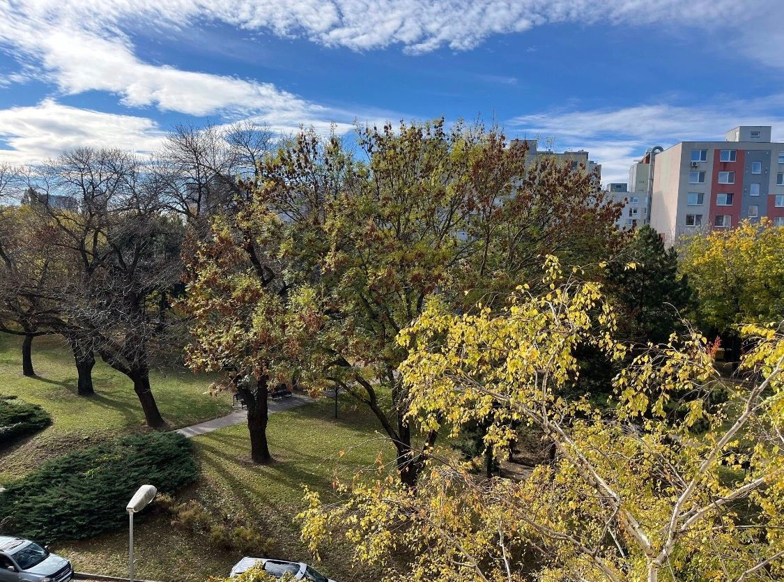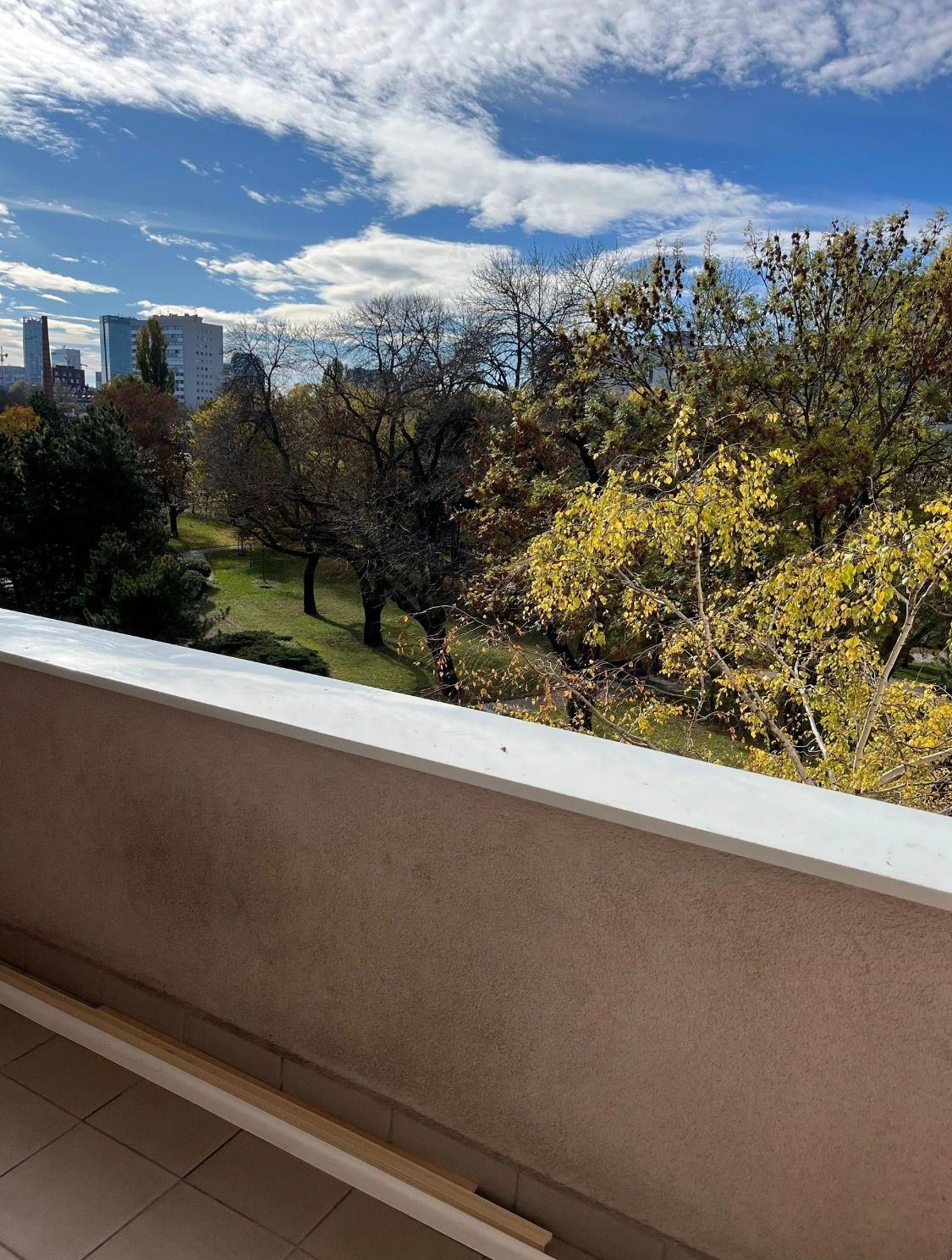 Balkón orientovaný s výhľadom na park poskytuje príjemné miesto na oddych.