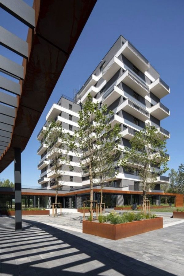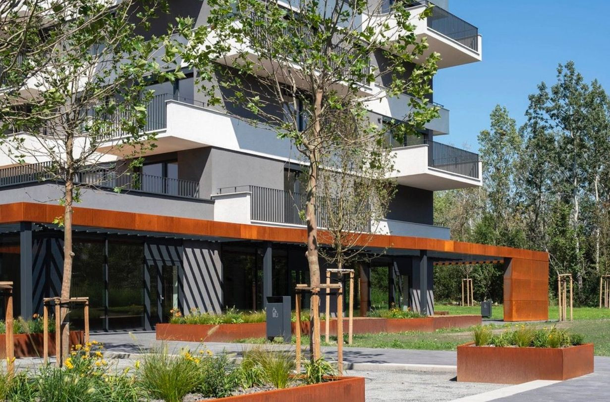 Bytový dom ponúka obyvateľom priestrannú spoločnú strešnú terasu so zeleňou, ideálnu na oddych a panoramatické výhľady.